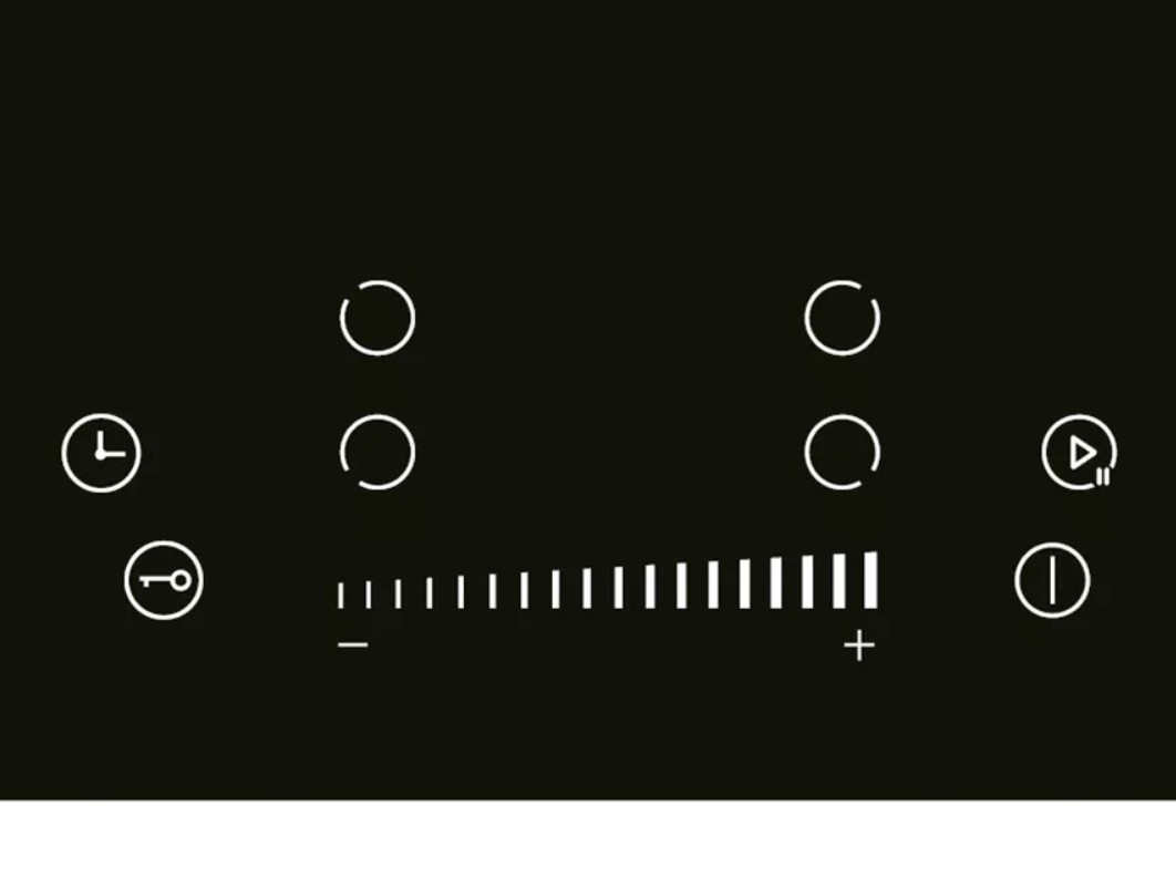 Основой поверхности служит черное термостойкое закаленное стекло, которое отличается повышенной стойкостью к температурным перепадам и механическим воздействиям, а также легко очищается от загрязнений. Гладкая поверхность без выступающих элементов обеспечивает простой уход и поддержание чистоты. Панель управления спроектирована таким образом, чтобы обеспечить интуитивную регулировку мощности каждой конфорки, позволяя точно настраивать уровень нагрева в соответствии с потребностями кулинарного процесса.
