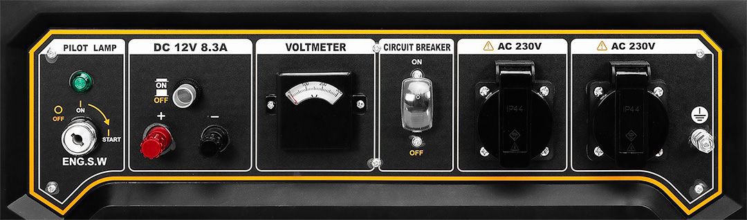| Особенности | вольтметр, автоматическое регулирование напряжения AVR, датчик уровня масла, защита двигателя от низкого уровня масла, транспортировочные колеса, ручки для переноски. Солнечная панель: мощность 15 Вт, разъемы 2xUSB (5В/1.5A), степень защиты IP64 |