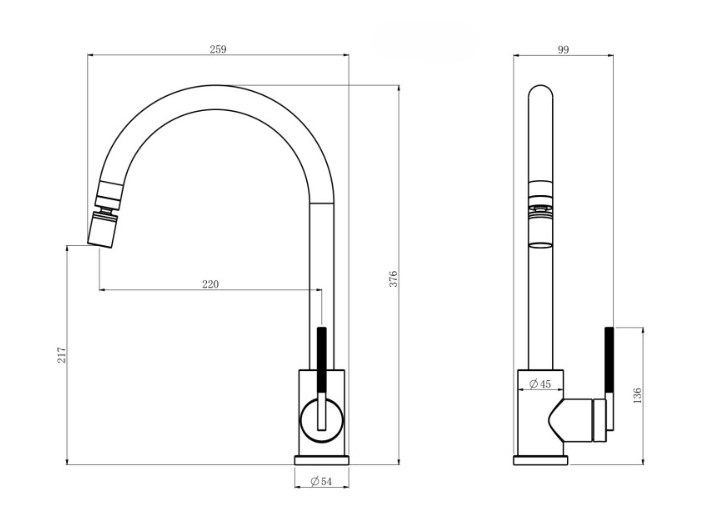Главная особенность Nett EG-22 – поворотная головка, которая вращается на 360 градусов. Благодаря ей вы можете легко направлять поток воды в любую точку мойки, без труда перемещаться между двумя чашами, мыть большой сосуд или наполнять высокие емкости. Такая функциональность делает кухонное пространство более удобным. Смеситель оснащен керамическим картриджем 25 мм, что обеспечивает плавность и точность управления температурой и напором воды. Модель монтируется на столешницу или на мойку и однорычажная — все просто, быстро и интуитивно.