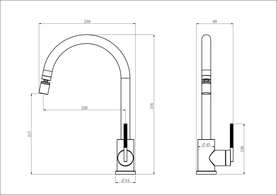 Корпус выполнен из нержавеющей стали AISI 304, что гарантирует защиту от коррозии, влагостойкость и высокую износостойкость. Внутри установлен керамический картридж 25 мм, обеспечивающий плавность хода и стабильную подачу воды без перепадов. Смеситель подходит для монтажа как на столешницу, так и непосредственно на мойку.