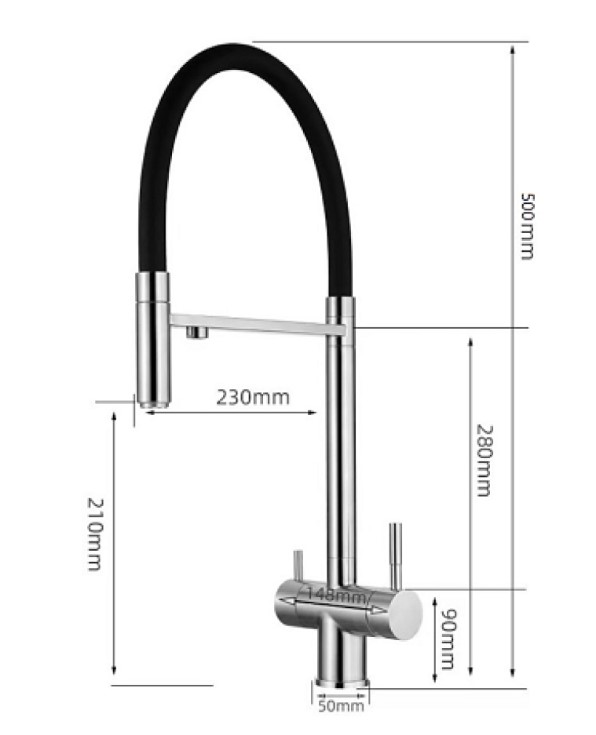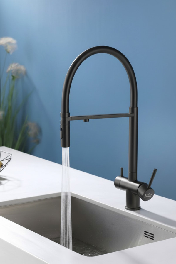 Nett GFGr-56 (034520) — кухонный смеситель с подключением к фильтрованной воде, предназначенный для тех, кто ценит доступ к чистой воде прямо из крана и современный функциональный дизайн. Этот смеситель имеет врезную конструкцию с двумя рычагами управления, позволяющими отдельно регулировать поток воды из водопровода и фильтрованной системы, обеспечивая комфортный доступ к питьевой воде без дополнительных кранов или оборудования.