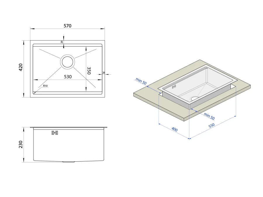 | Тип монтажа | Под столешницу |