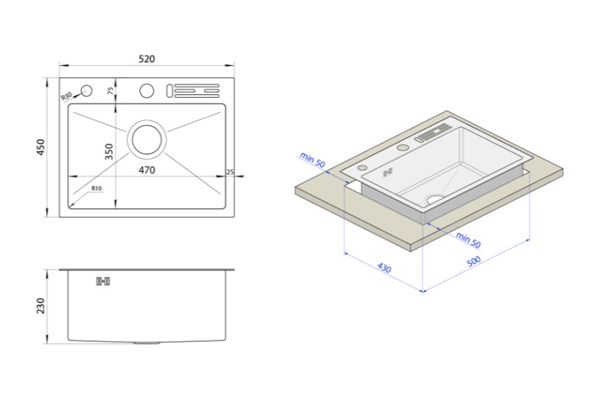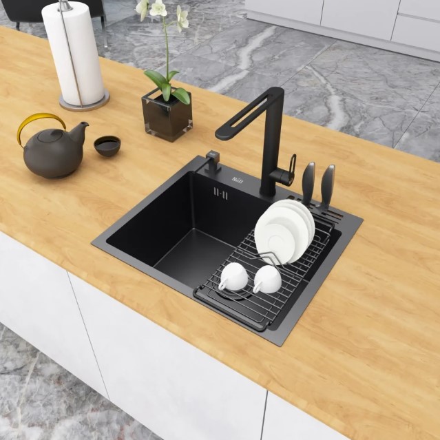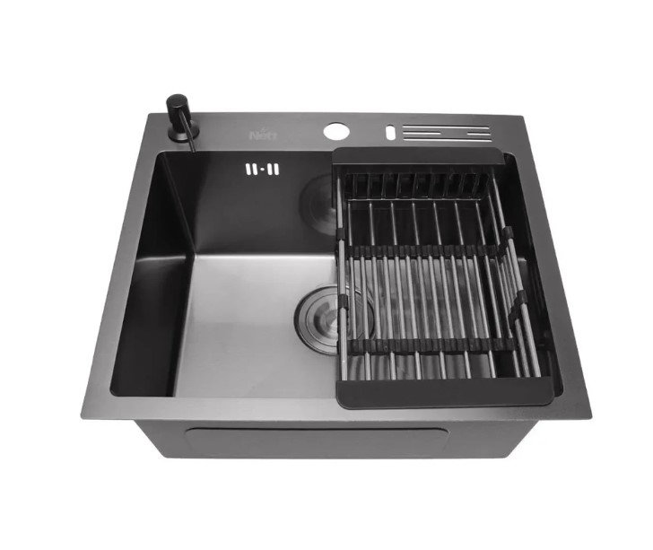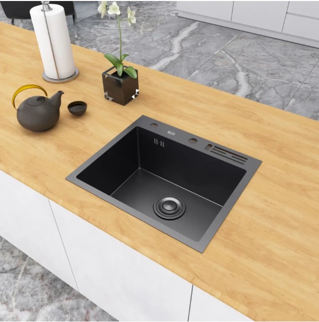 Инновационное покрытие Nano. Даже при повреждениях, оно продолжает защищать мойку от коррозии, не позволяя металлу оголиться. Подходит для каждой кухни. Стандартные размеры и универсальные крепежи позволяют интегрировать мойку в любой дизайн кухни и любую столешницу. Имеет встроенное отверстие для ножей. Забудьте о необходимости дополнительной подставки и освободите пространство на столешнице, избегая накопления грязи.