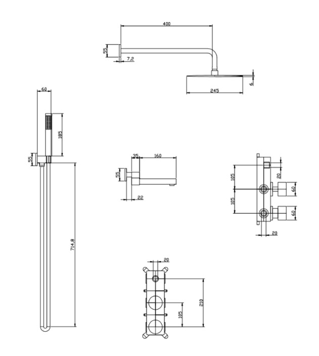 | Комплектация | верхний душ, кронштейн, ручной душ, душевой шланг, смеситель |