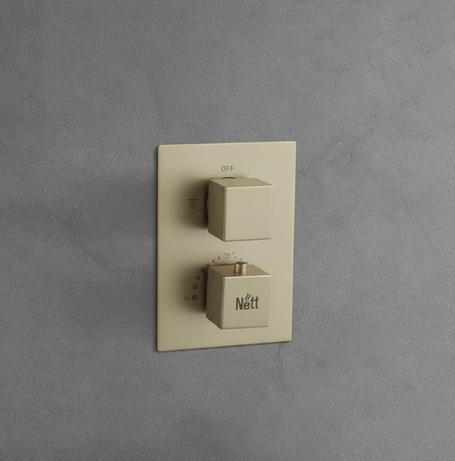 Главное преимущество Nett TSG-473 – это наличие термостата, который обеспечивает стабильную температуру воды без перепадов. Это значительно повышает комфорт и безопасность, ведь не нужно каждый раз вручную настраивать температуру – система сама поддерживает заданный уровень. Это особенно актуально для ежедневного использования и семей с детьми. Конструкция изготовлена из латуни и нержавеющей стали, что гарантирует долговечность и коррозионную стойкость. Золотое покрытие выглядит эффектно и подчеркивает премиальный уровень сантехники, а металлические элементы управления придают надежность и приятные тактильные ощущения.