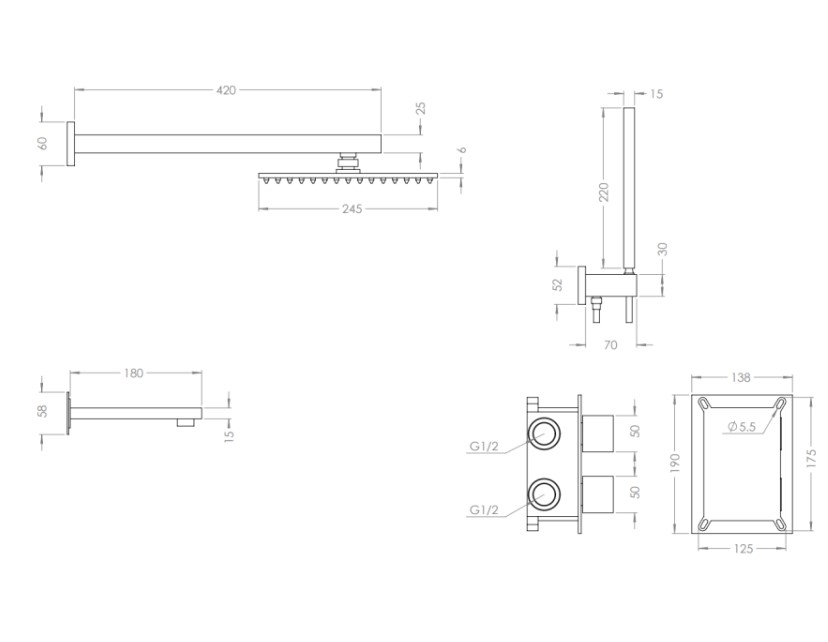 | Комплектация | верхний душ, кронштейн, ручной душ, душевой шланг, термостат |
