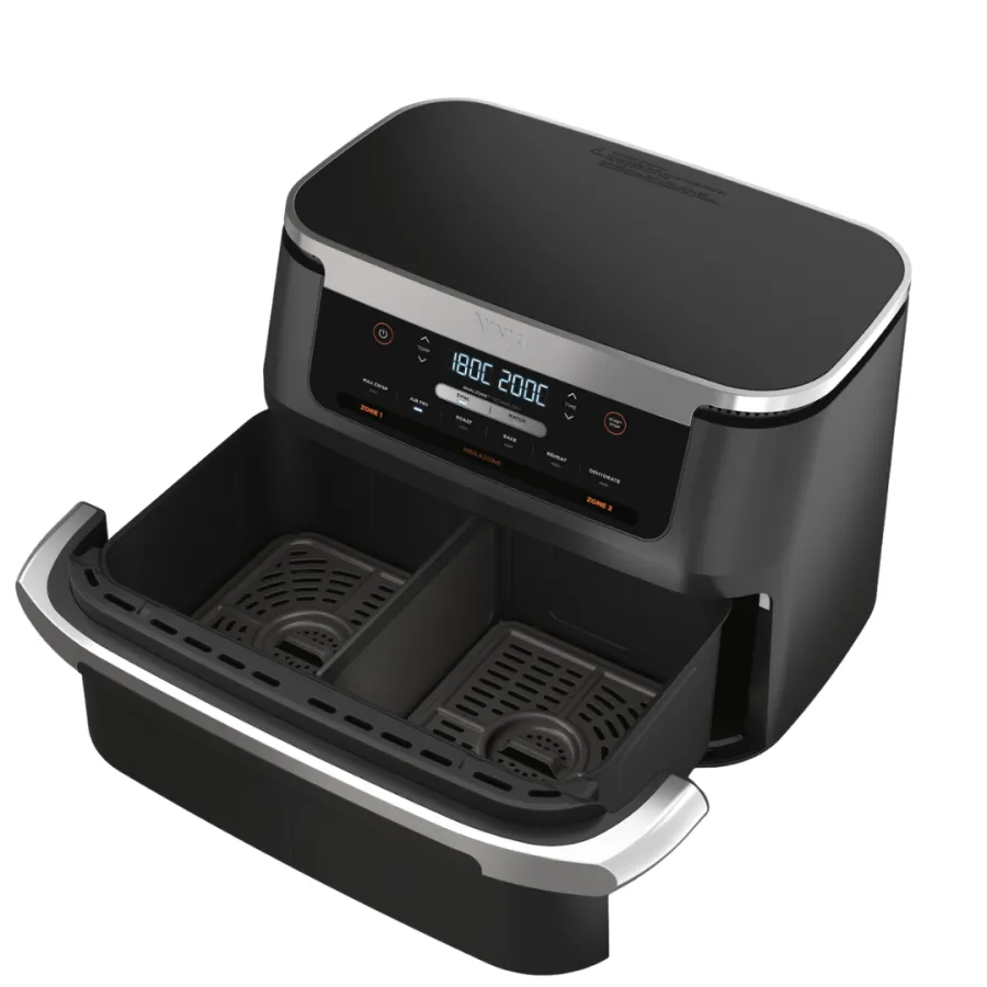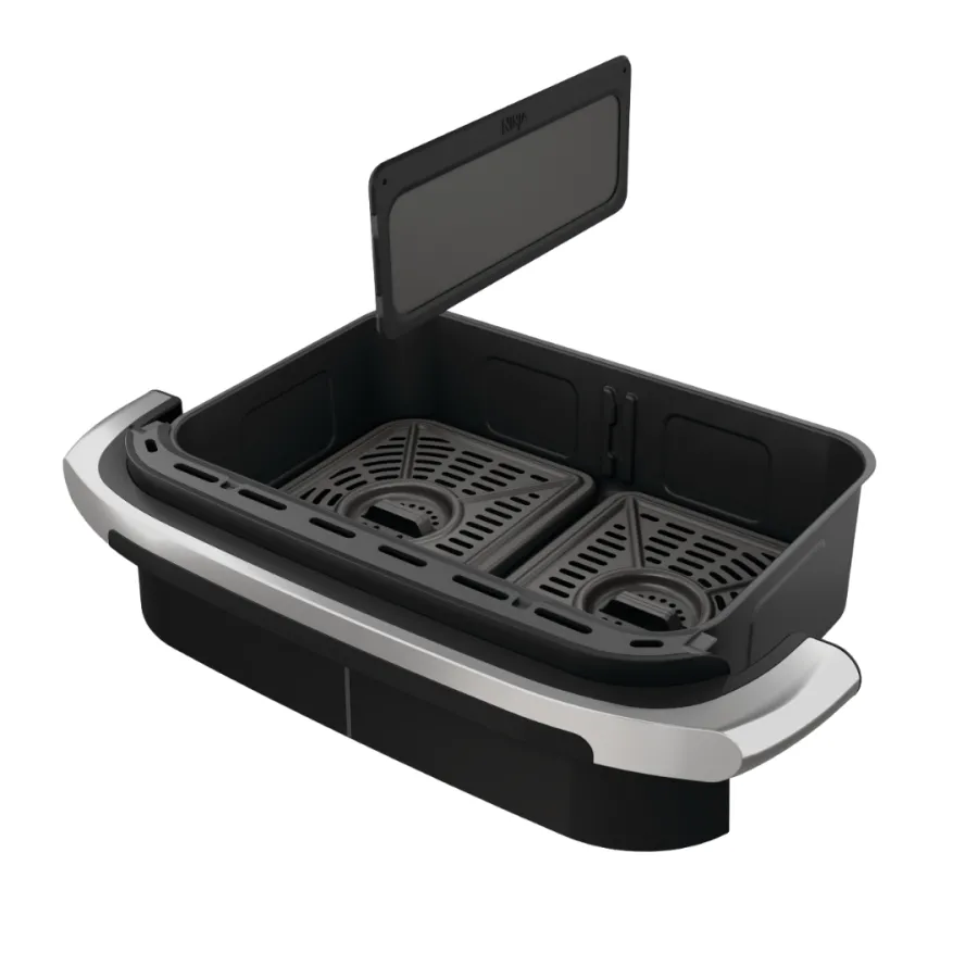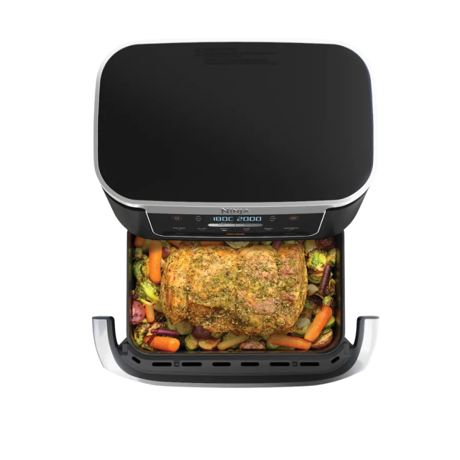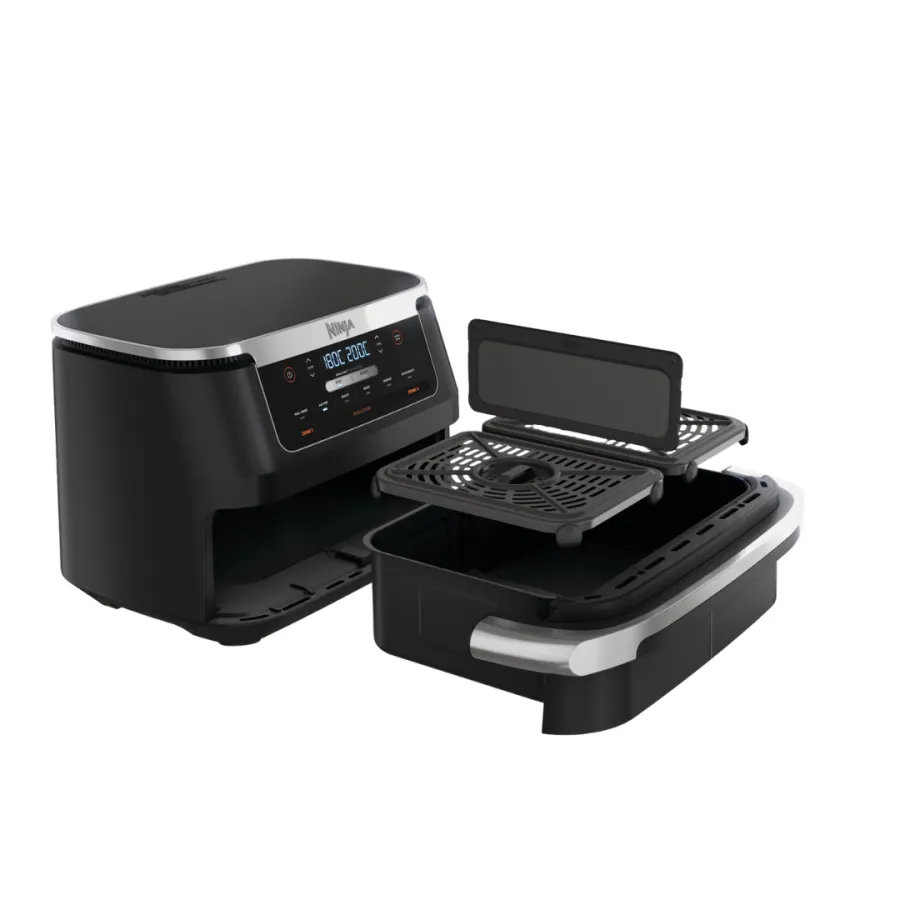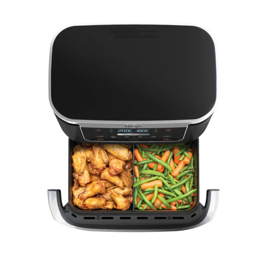 Ninja AF550EU – это универсальная мультипечь нового поколения с гибким форматом приготовления, сочетающая компактность и функциональность двухзонных моделей. Главная особенность — система FlexDrawer, которая позволяет использовать одну большую корзину или разделить ее на две независимые зоны. Это означает, что можно либо готовить одно большое блюдо, либо сразу два разных — с разными настройками температуры и времени.