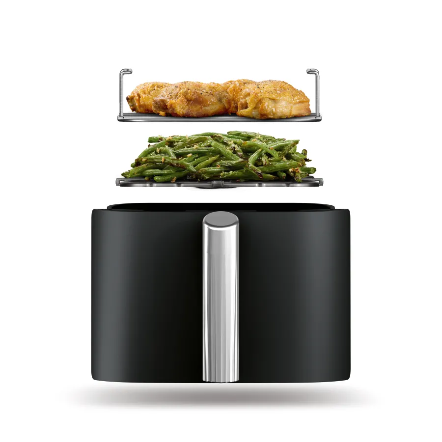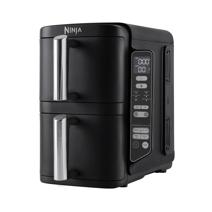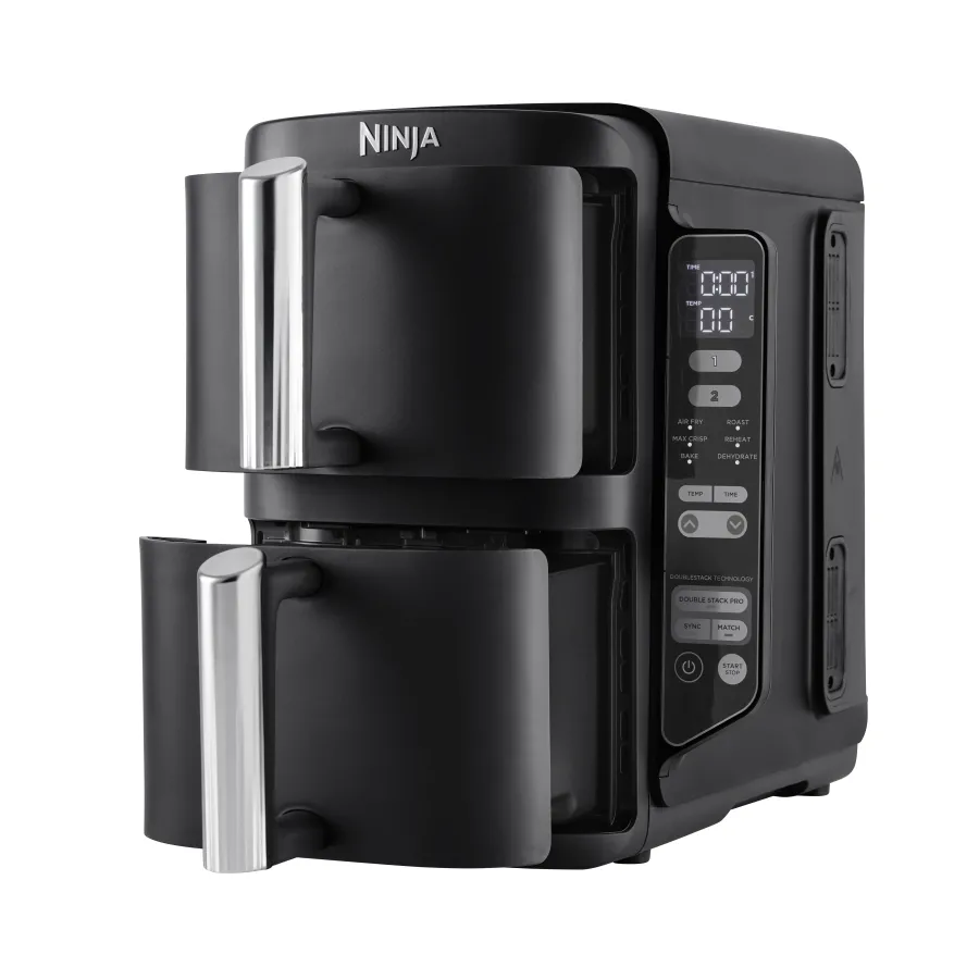 Ninja Double Stack SL300EU – это мультипечь нового поколения, которая предназначена для быстрого, удобного и максимально гибкого приготовления разнообразных блюд. Ее ключевая идея – дать возможность готовить больше, быстрее и без лишних усилий, сохраняя при этом вкус и пользу продуктов. Главной особенностью модели является двойная вертикальная конструкция Double Stack. Благодаря двум независимым корзинам, расположенным друг над другом, вы можете готовить сразу несколько блюд, не занимая много места на кухне. Это идеальное решение для современных кухонь, где важен каждый сантиметр пространства.