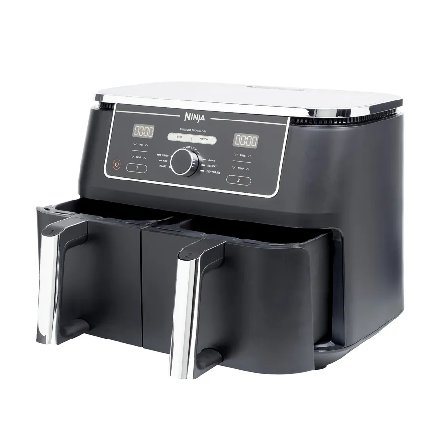 Ninja AF400EU – это одна из самых популярных мультипечей Ninja, которая идеально сочетает в себе большой объем, двухзонное приготовление и максимальную универсальность. Это решение для тех, кто хочет готовить многое, быстро и без компромиссов по качеству. Главное преимущество – две независимые зоны приготовления Dual Zone. Вы можете одновременно готовить два совершенно разных блюда с разными настройками температуры и времени. Например: мясо и гарнир, рыба и овощи – без смешивания запахов и без очереди на кухне.