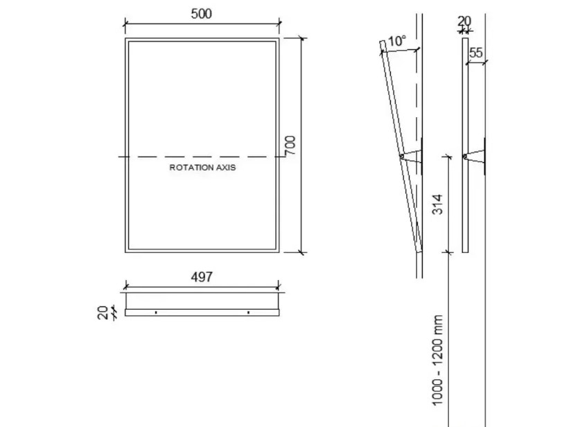 Зеркало Nofer 08023.S — специальное решение для адаптированных санузлов: имеет наклонный механизм, позволяющий изменять угол обзора, поэтому пользователи на инвалидных колясках или сидящие могут комфортно пользоваться им без ограничений.