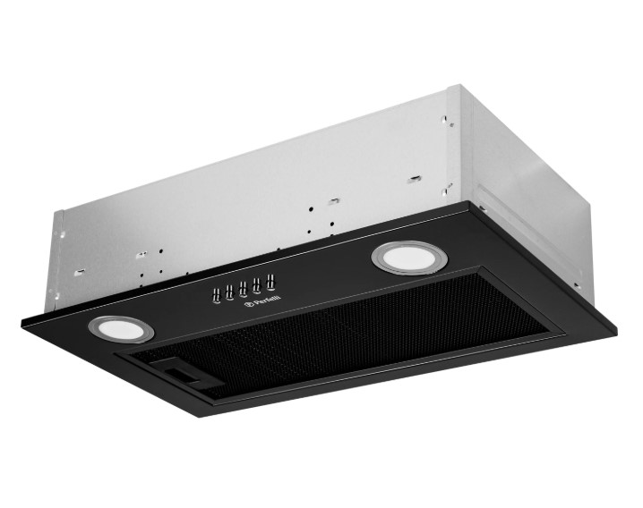 Вытяжка оборудована трехслойным алюминиевым фильтром черного цвета, эффективно защищающим мотор и другие детали устройства от загрязнения жиром и испарениями. Управлять вытяжкой – удобно и легко. Пять механических кнопок расположены посредине фасадной части модели. Чтобы выбрать нужную скорость работы или включить освещение, достаточно легкого нажатия Помимо своей основной задачи такая кухонная вытяжка имеет эргономичную функцию и позволяет рационально использовать пространство в зоне над варочной поверхностью.