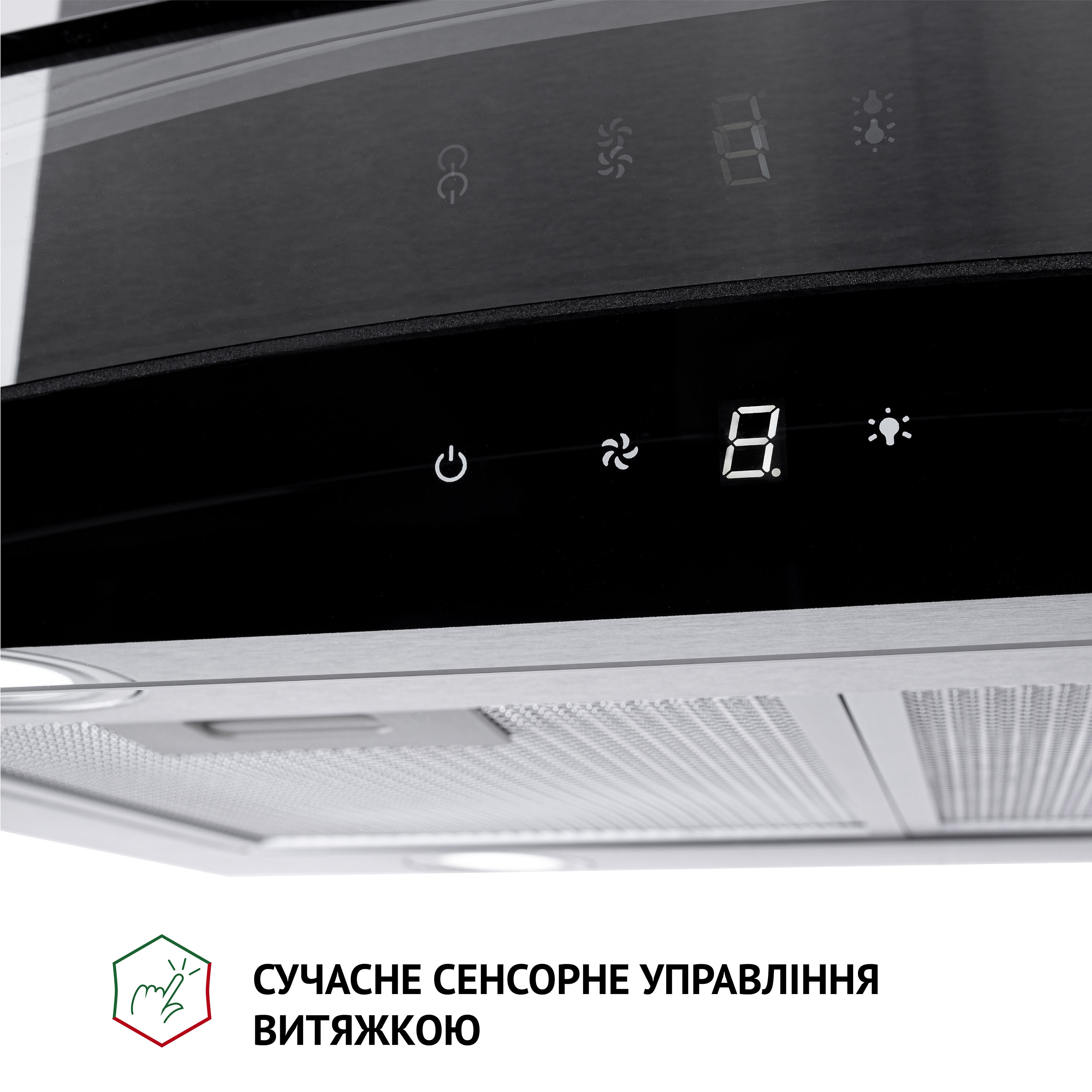 Управлять вытяжкой Perfelli CGS 9632 I 1000 LED одно удовольствие! Использовать сенсорные кнопки управления для включения необходимой скорости работы и освещения будет удобно и приятно. Также в комплект входит пульт дистанционного управления.