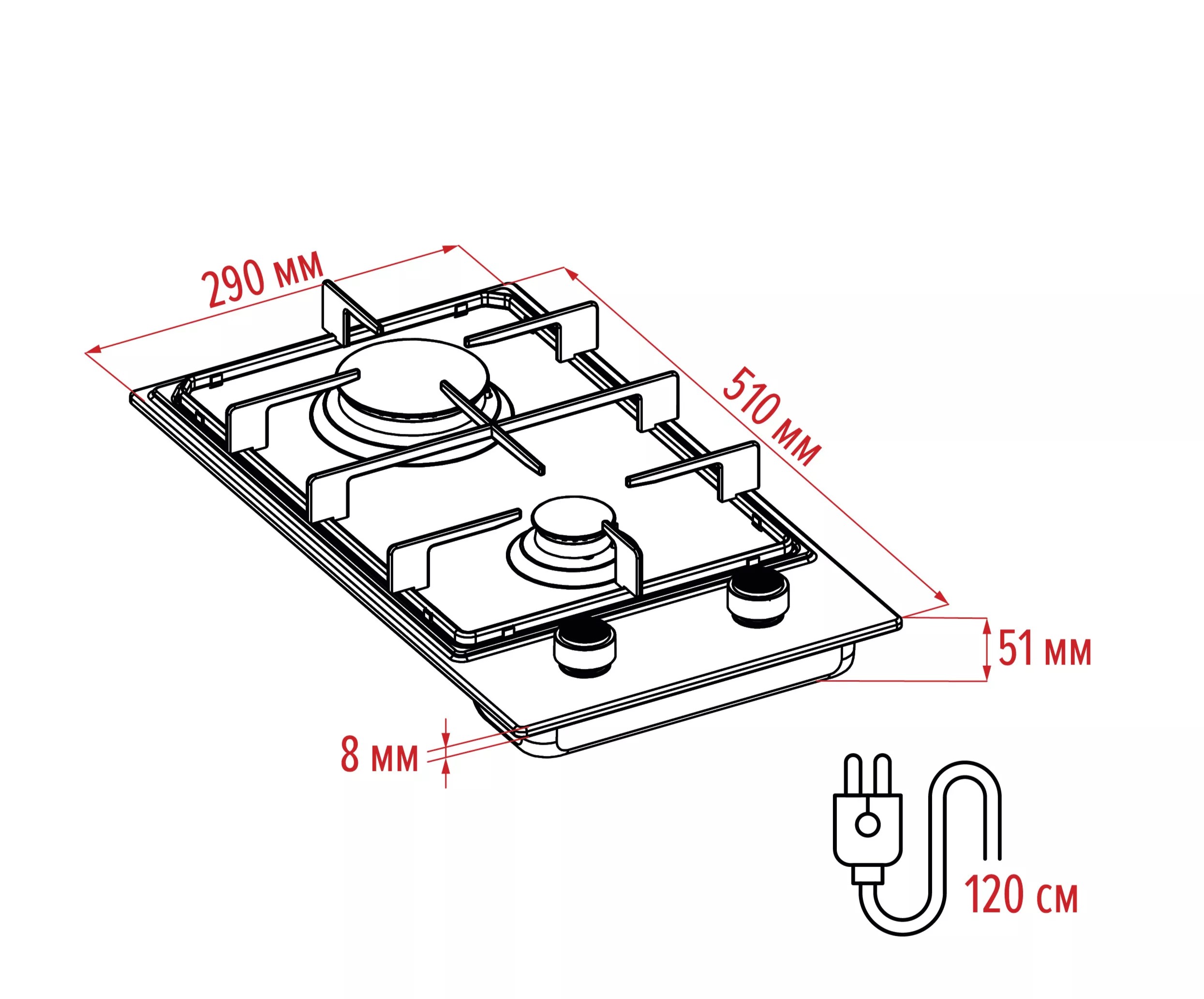 Поверхность изготовлена из закаленного стеклянного материала, отличается повышенной стойкостью к царапинам, механическим воздействиям и высоким температурам, а также легко очищается от загрязнений. Управление осуществляется удобными термостойкими поворотными переключателями, а газ-контроль гарантирует повышенный уровень безопасности при использовании — автоматически перекрывает подачу газа в случае случайного затухания пламени. Варочная поверхность комплектуется одной чугунной решеткой, обеспечивающей стабильную опору для посуды. Благодаря переднему расположению панели управления управлять конфорками легко и интуитивно даже во время активной готовки. Эта модель идеально подходит для тех, кто ценит компактность, простоту эксплуатации и современный дизайн на кухне, а также для кухонь, где важна эффективная газовая варочная поверхность с базовой функциональностью.