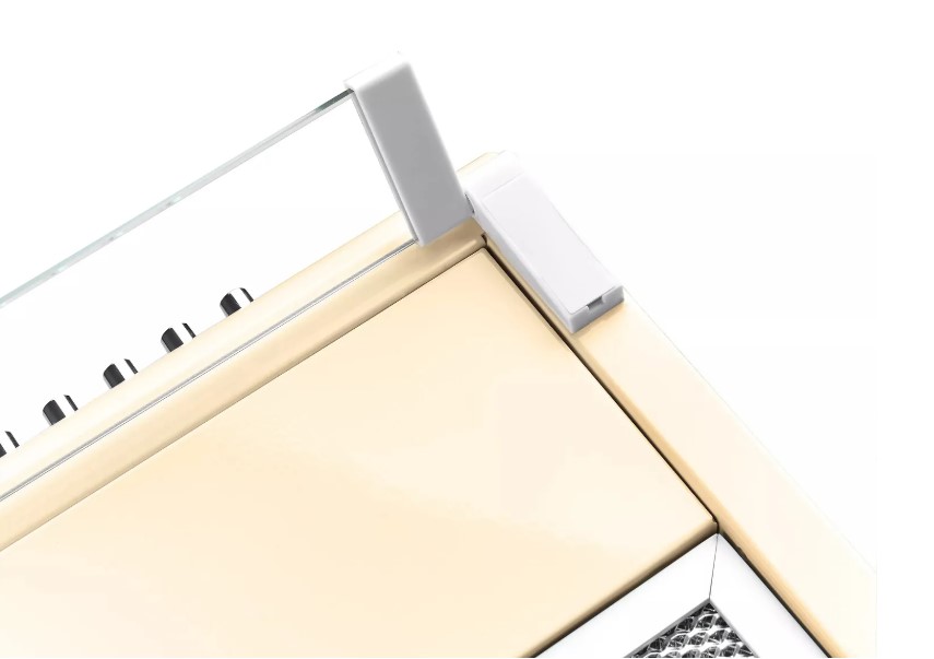 Панель управления расположена спереди и содержит понятные кнопки для выбора скорости и включения освещения. Простой интерфейс и физические переключатели делают управление максимально удобным. Вы легко выбираете между тремя режимами вытяжки в соответствии с ситуацией на кухне. Плоская форма корпуса и гладкое крашеное покрытие облегчают ежедневную очистку от пыли и жира. Алюминиевые фильтры съемные, их можно мыть вручную или в посудомоечной машине. Стеклянный козырек также легко протирается обычным моющим средством. Регулярное обслуживание не требует специальных навыков или затрат.