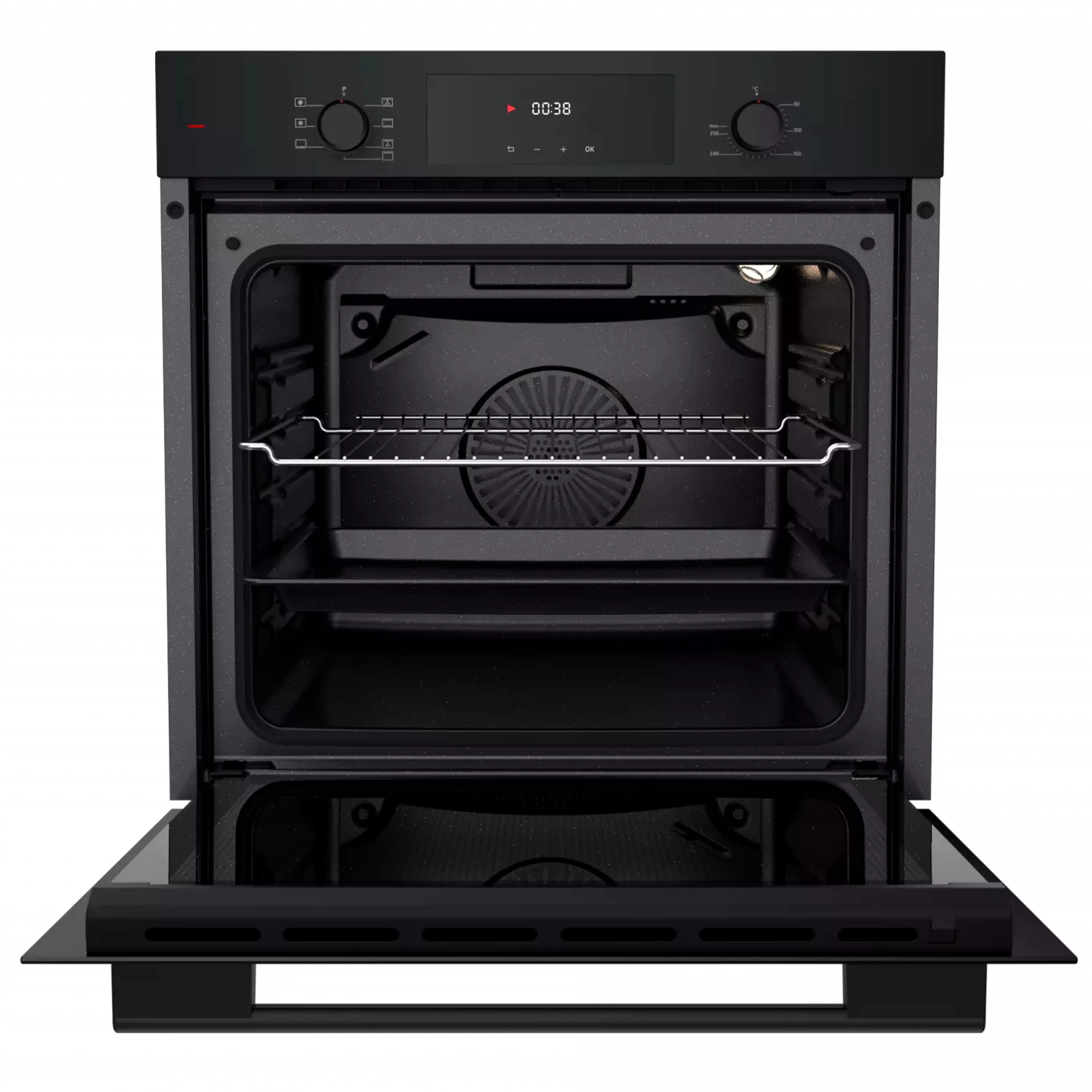 Стильный встроенный электрический духовой шкаф Perfelli PRIME 6D7 NERO в элегантном черном исполнении – идеальное решение для современной кухни, сочетающей продуманный дизайн и практичность. Модель имеет объем, обеспечивающий достаточно пространства для приготовления больших блюд или выпечки на нескольких уровнях. Управляется с помощью поворотных механических ручек и LED-дисплея и предоставляет 7 режимов приготовления (включая конвекцию, таймер, размораживание). Панель из черного крашеного металла, дверца из стекла SCHOTT и внутренняя камера с эмалью легкой очистки – все это создано для комфорта.