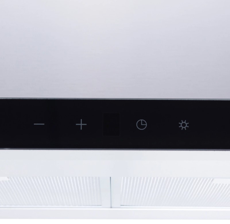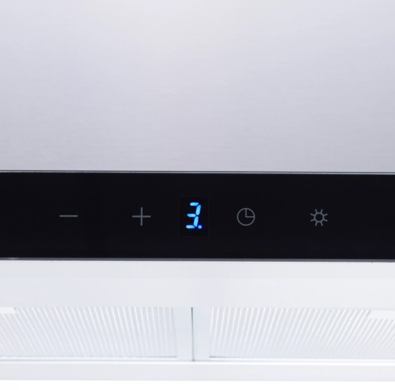 Декоративная T-образная вытяжка. Цвет вытяжки – нержавеющая сталь, фронтальная панель – черное закаленное стекло. Четкость линейта – прекрасная функциональность Т-образной вытяжки Perfelli TS 6822 I/BL LED принесет гармонию в ваш кухонный интерьер и превратит его в неузнание. Максимальная мощность вытяжки со свободным выходом воздуха составляет 1200 м3/ч. Панель управления размещается в передней части вытяжки. Она состоит из четырех сенсорных кнопок отвечающих за переключение скоростей вентилятора и включение света. Освещение вытяжки состоит из двух круглых LED ламп мощностью 2 Вт. Вытяжка снабжена практичным алюминиевым фильтром, который можно просто и легко вымыть в теплой мыльной воде. Вытяжка может работать в режиме отвода и рециркуляции воздуха.