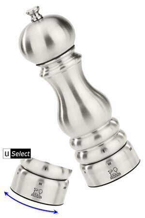 Мельница изготовлена из матовой нержавеющей стали. Механизм для помола имеет специальное покрытие, предотвращающее коррозию. Система управления U'Select обеспечивает 6 предустановленных степеней помола. Просто поверните кольцо у основания мельница и выберите одно из значений степени помола. С U'Select теперь не будет риска изменения помола во время использования мельницы.