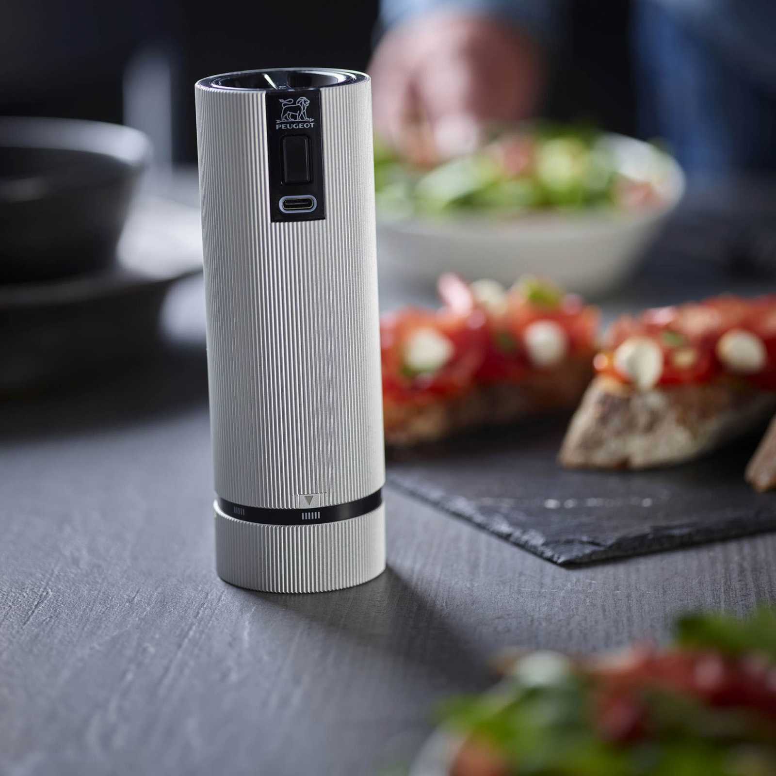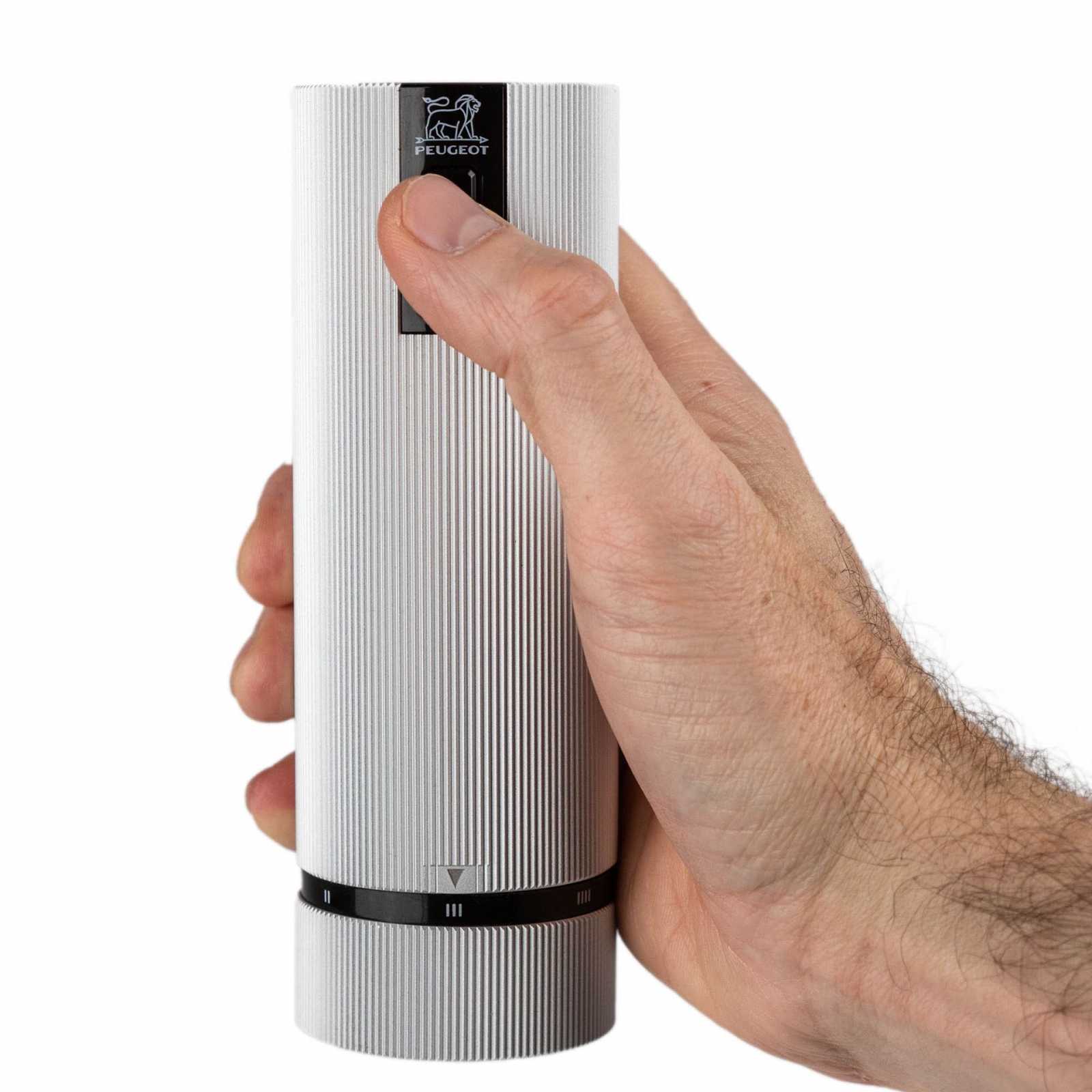 Стильная и компактная мельница для специй Peugeot LINE USelect – это сочетание инноваций, надежности и элегантности. Корпус из алюминия с ребристой поверхностью удобно лежит в руке, а воронковидная форма контейнера значительно облегчает наполнение. Современный литий-ионный аккумулятор последнего поколения обеспечивает длительную работу и быструю зарядку через USB, поэтому электрическая мельница для специй всегда готова к использованию. Механизм обладает исключительной жесткостью и превосходит традиционную сталь и керамику, обеспечивая максимально точный и равномерный помол. Благодаря системе USelect вы можете выбирать между 6 уровнями помола – от очень мелкого до грубого, настраивая вкус блюда под собственные предпочтения. Эта мельница для соли предназначена для измельчения сухих кристаллов каменной соли диаметром до 4 мм (не используйте для влажной морской соли). Эргономичный дизайн делает его удобным даже при длительном использовании, а компактные размеры позволяют легко разместить его на кухне или на праздничном столе.