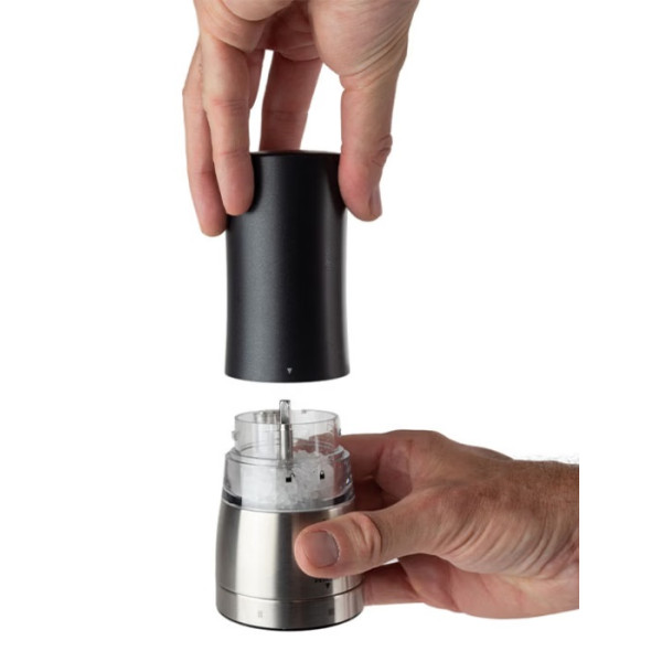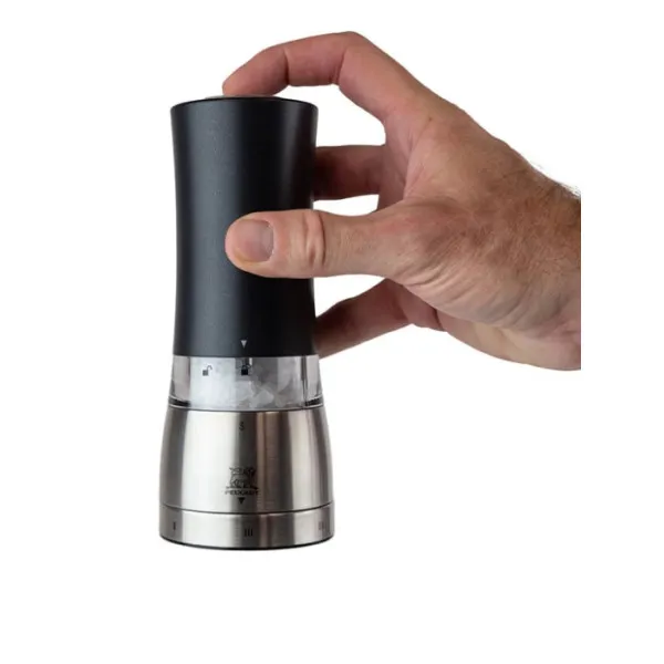 Мельница для соли электрическая Peugeot Daman U-Select Zirlion 16 см - эта мельница сочетает утонченный современный дизайн, надежные технологии и максимальное удобство использования. Выполнен в элегантном черном корпусе из нержавеющей матовой стали и прозрачной акриловой вставки, что позволяет легко контролировать уровень специй внутри. Мельница может управляться одной рукой и оснащена светодиодной подсветкой. Запатентованная система USelect позволяет заранее точно установить степень измельчения. Доступно шесть ступеней измельчения - от очень мелкой до грубой.