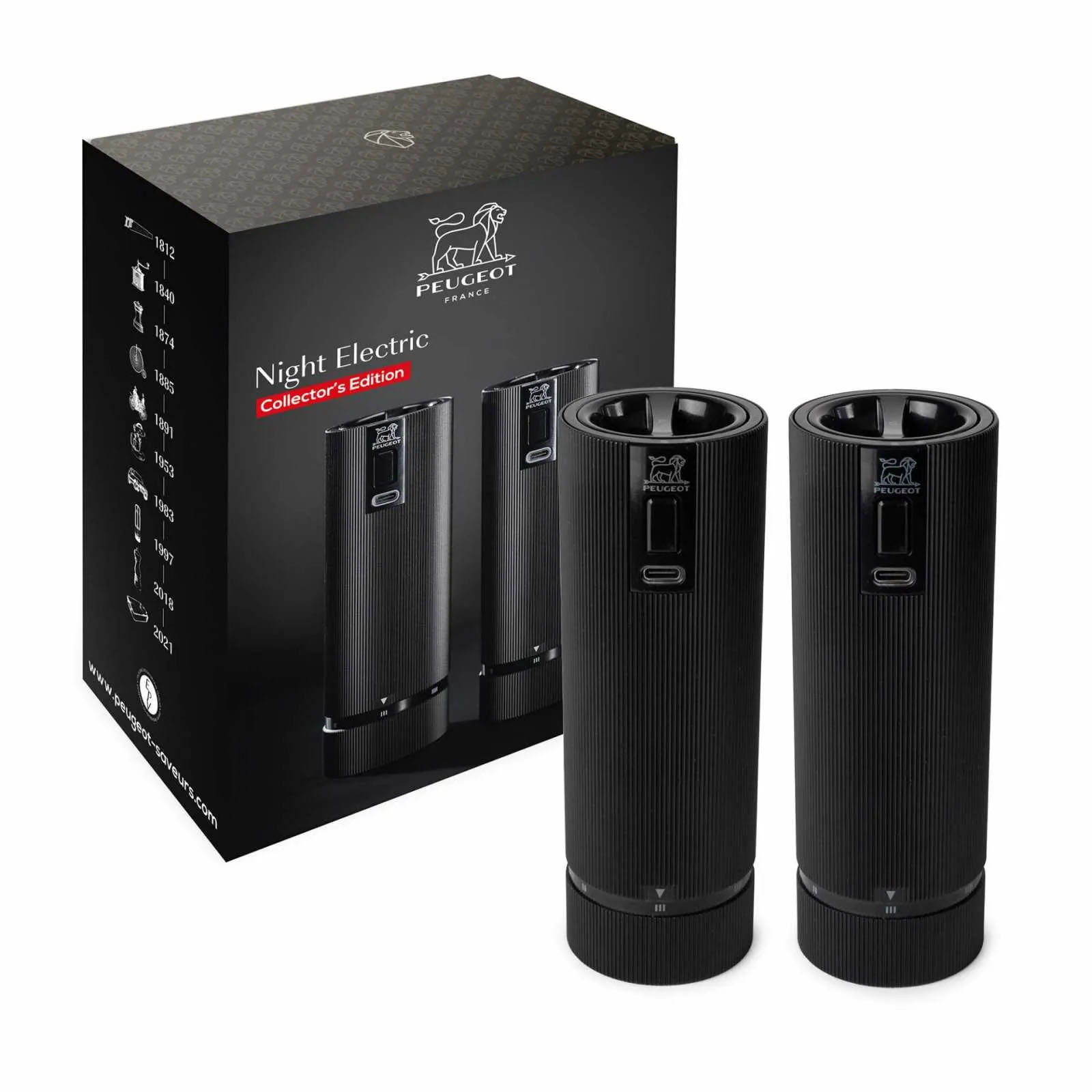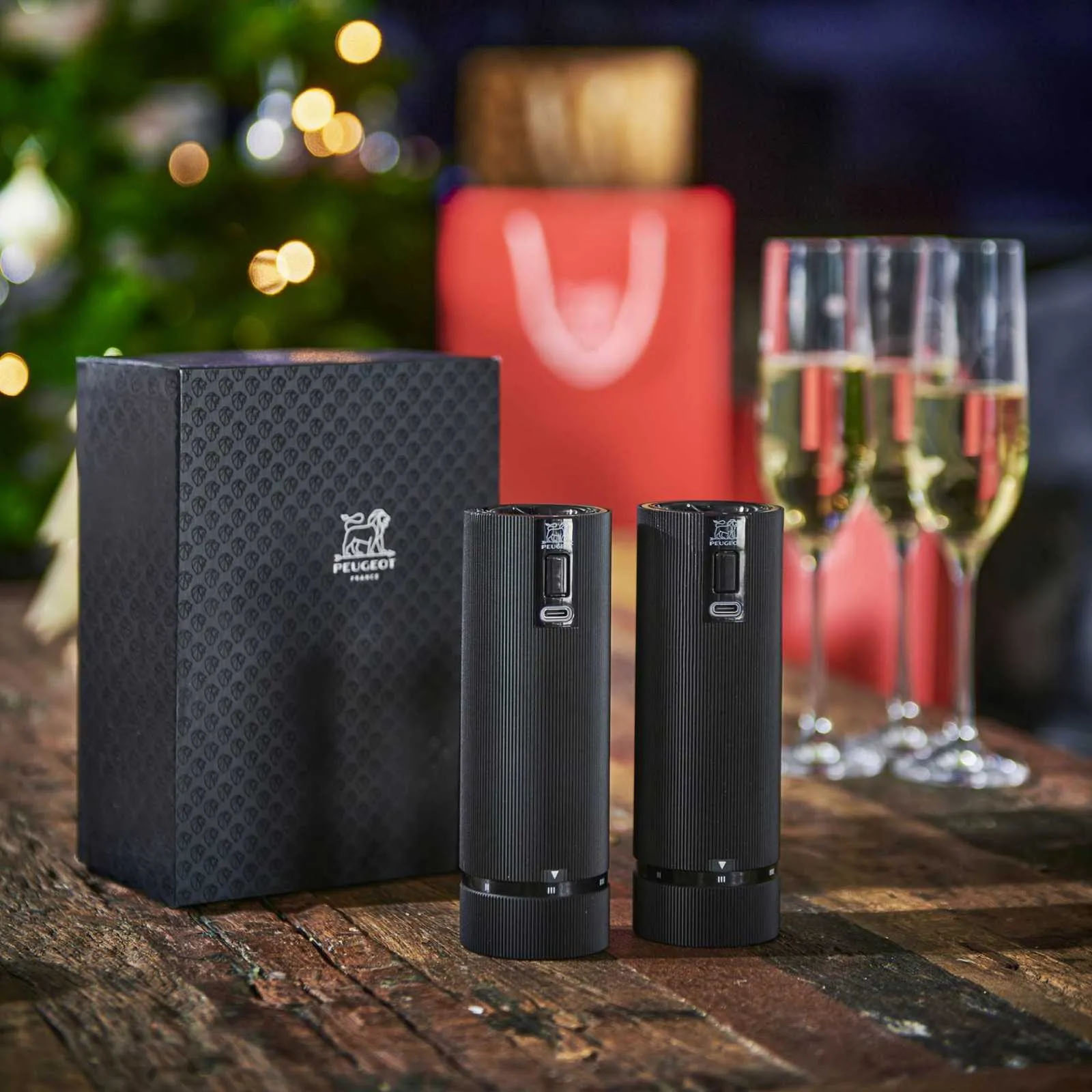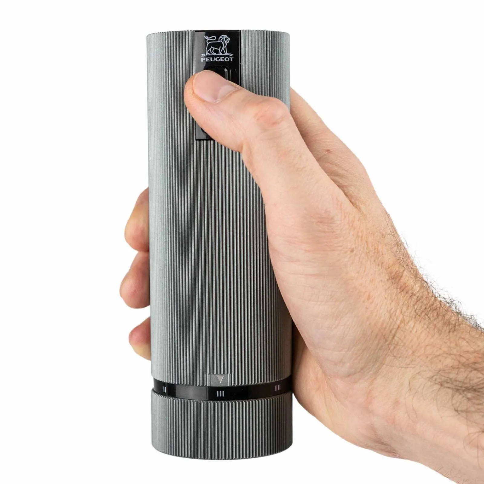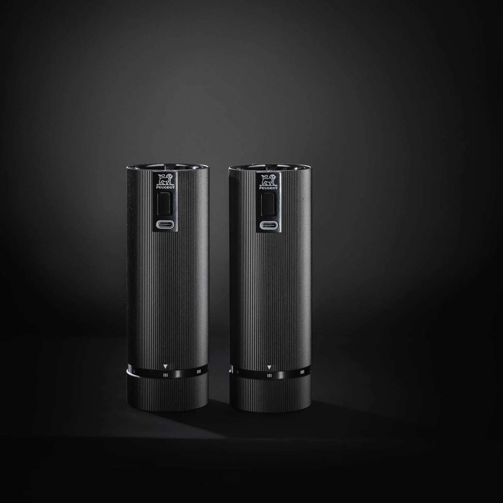 Компактные электрические мельницы для специй высотой 15 см имеют алюминиевый корпус с черным матовым покрытием и ребристой поверхностью, которая обеспечивает надежное и комфортное держание. Воронковидный резервуар облегчает наполнение, а встроенный литий-ионный аккумулятор с USB-зарядкой позволяет быстро заряжать мельницы. Благодаря запатентованной системе uSelect вы можете выбрать один из 6 уровней помола – от мельчайшего порошка до грубых крупинок, что позволяет подчеркнуть вкусовые оттенки любого блюда. Peugeot Line Night Chic – это больше, чем просто набор электрических мельниц. Это современный инструмент для гурманов, сочетающий безупречный вкус, технологии и роскошный вид.