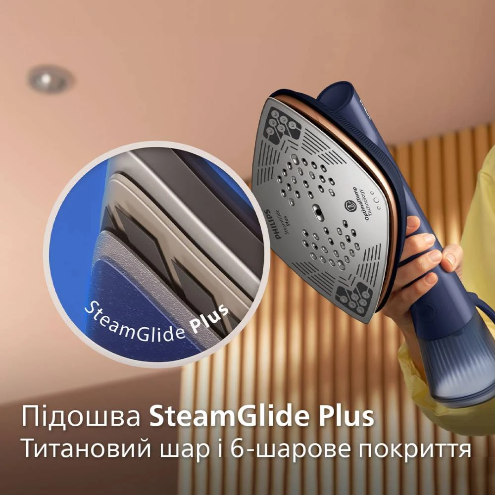 Главное преимущество Philips OneTurn GC215/20 – сочетание мощности утюга и удобства отпаривателя. Мощность, постоянная подача пара до 45 г/мин и паровой удар до 90 г/мин позволяют эффективно разглаживать даже плотные ткани. Технология OptimalTEMP автоматически подбирает температуру без риска прожечь ткань, а подошва SteamGlide Plus обеспечивает легкое скольжение и аккуратный результат.