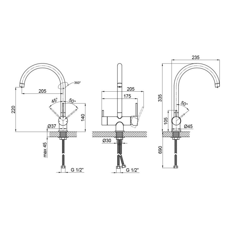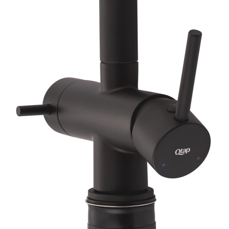Смеситель для кухни с фильтром Qtap Kuchyne 92102UB изготовлен из высококачественной пищевой латуни, которая не подвержена коррозии, устойчива к ударам и появлению трещин. Матовое черное покрытие повышает долговечность смесителя, придает ему привлекательности. Смеситель имеет однорычажное управление, с помощью которого можно отрегулировать температуру и напор воды. Смеситель может подключаться к фильтру для подачи фильтрованной воды. Изделие выполнено в современном стиле.