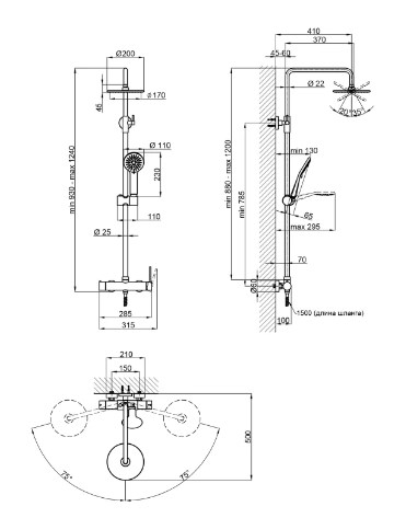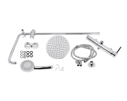 | Комплектация | смеситель, кронштейн для верхнего душа, лейка для верхнего душа, кронштейн для ручного душа, лейка для ручного душа, душевой шланг, душевая стойка, крепежи |
