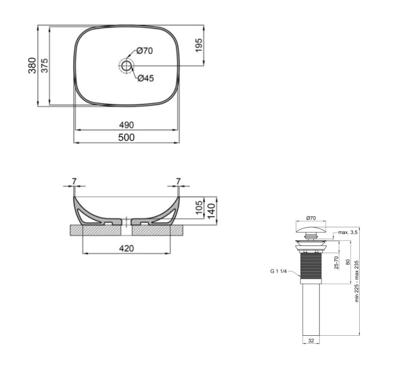| Комплектация | раковина, донный клапан, инструкция |