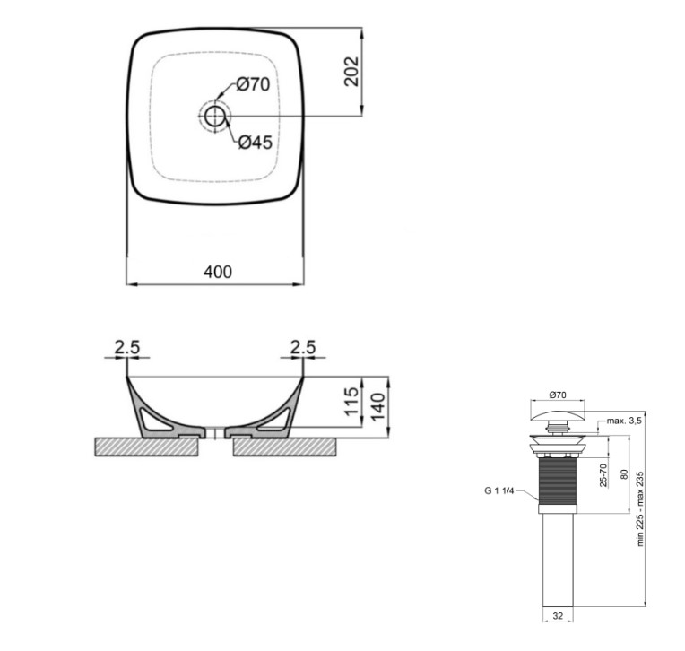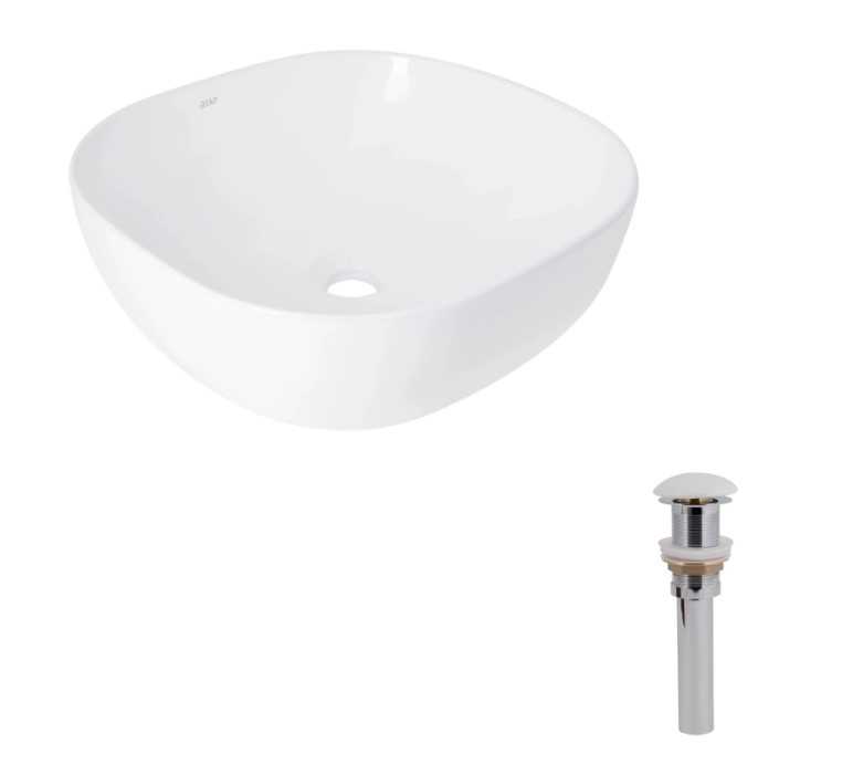 Комплект Q-tap Kolibri: Квадратная накладная раковина подойдет для компактных пространств. Белый цвет придает легкость, а донный клапан Pop-up PU02 делает эксплуатацию удобной и надежной.