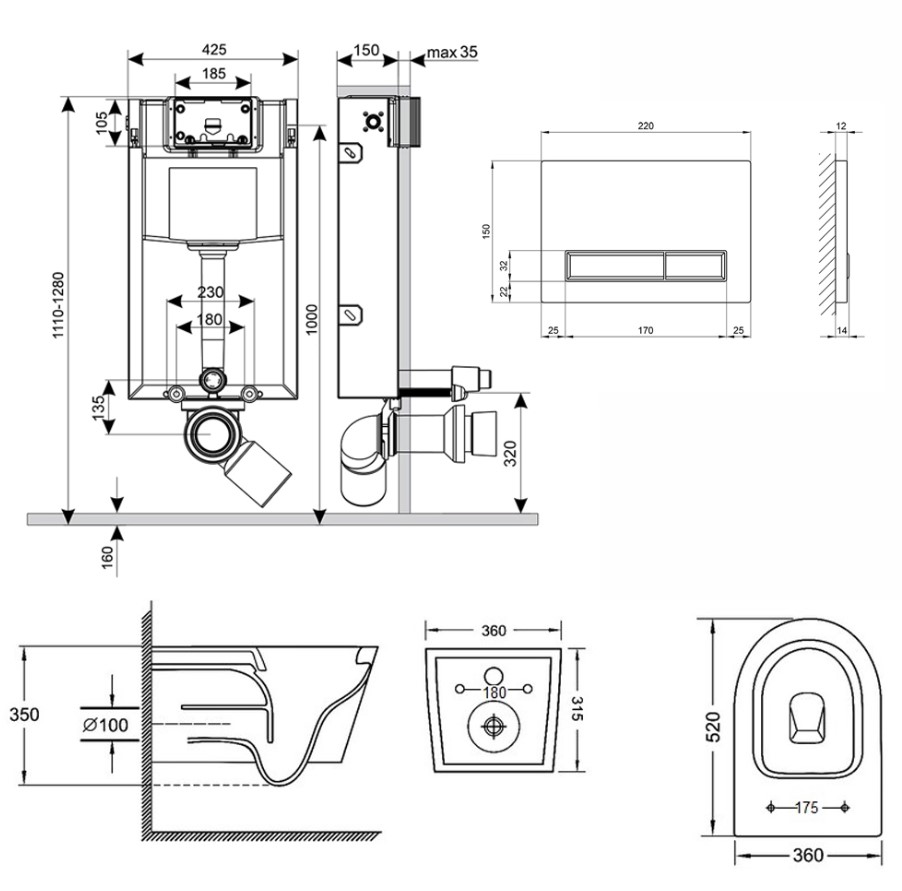 | Тип | инсталляционная система с унитазом и клавишей |