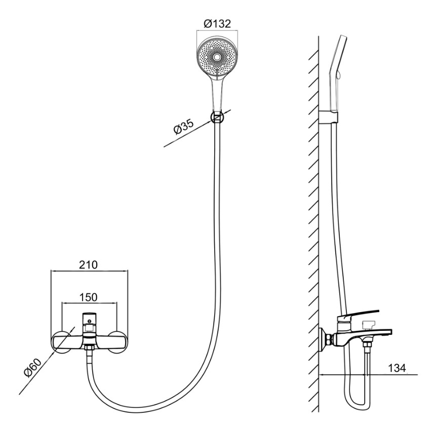| Комплектация | смеситель, лейка для ручного душа, душевой шланг, кронштейн для ручного душа, крепление |