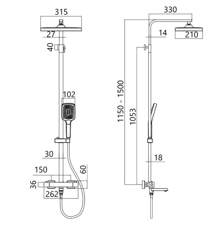 | Особенности | 3 режима ручного душа, регулируемый угол наклона верхнего душа, телескопическая душевая штанга ( регулируемая по высоте ) |