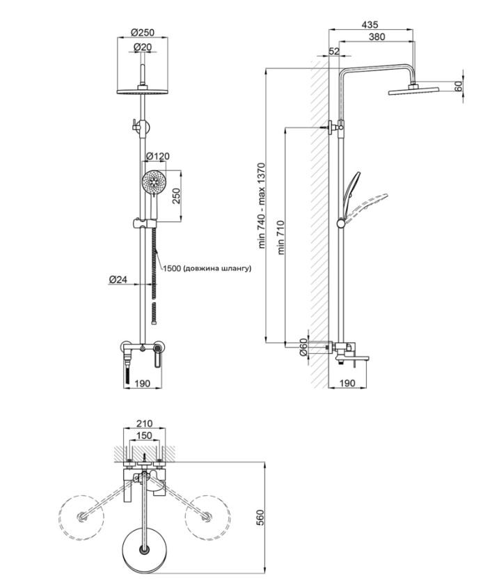| Диаметр верхнего душа, (см) | 25 |
