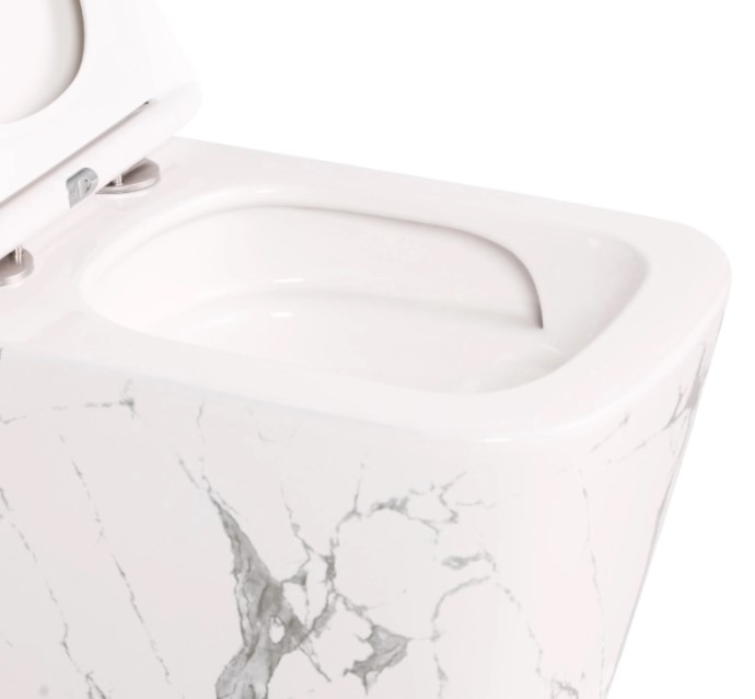 Комплект Tern Marble – выбор для интерьеров с акцентом на естественную текстуру. Рисунок мрамора создает эффект изысканной поверхности и подчеркивает статус пространства. Подвесной унитаз Q-tap Tern Ultra Quiet в украшении Marble сочетает современный дизайн и практичность. Изготовлен из прочной керамики, которая устойчива к влаге и проста в уходе. В комплект входит сиденье Slim из дюропласта с функциями Soft-close и Quick Release, что обеспечивает комфортное использование и легкое обслуживание. Беде подвесное Q-tap Tern – элегантная модель в современном дизайне. Компактные размеры и удобная форма обеспечивают комфорт, а крепкая керамика гарантирует долговечность и простой уход. Накладная раковина Q-tap Tern в украшении Marble сочетает современный дизайн и изысканный внешний вид. Прямоугольная форма обеспечивает удобство и функциональность, а использование качественных материалов гарантирует надежность и длительный срок службы. В комплект входит донный клапан.