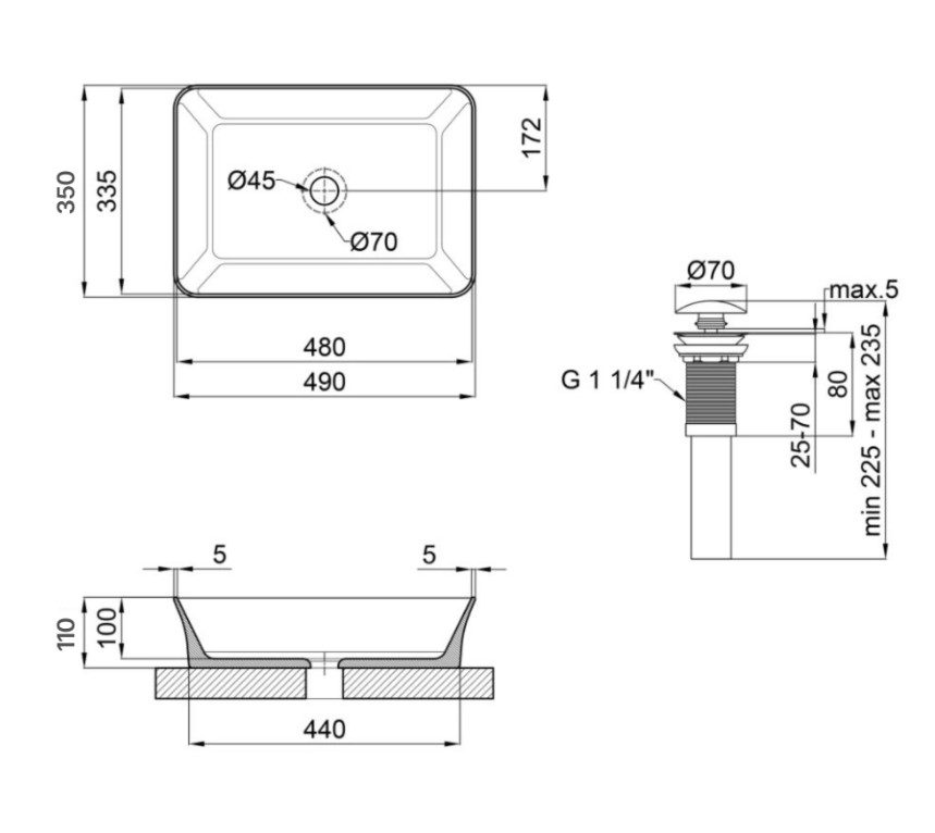 | Комплектация | раковина, донный клапан, инструкция |