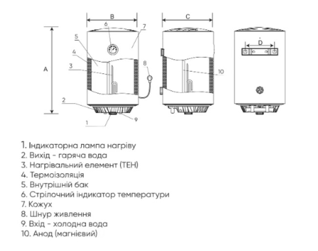 | Дополнительная защита | магниевый анод, защита от перегрева, предохранительный клапан (защита от избыточного давления) |