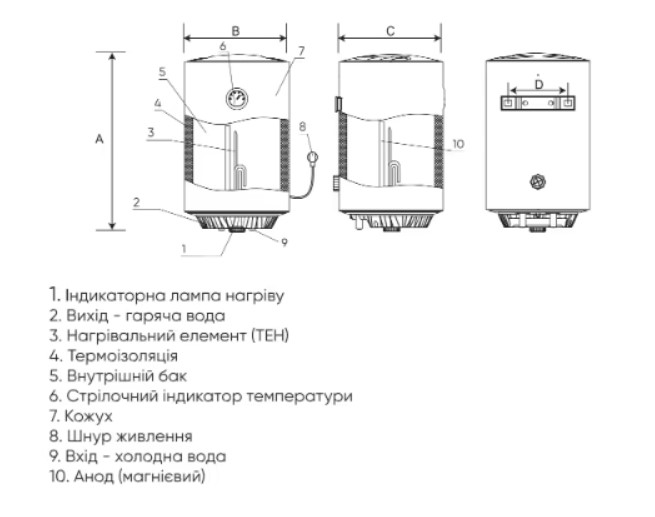 | Дополнительная защита | магниевый анод, предохранительный клапан (защита от избыточного давления), защита от перегрева |