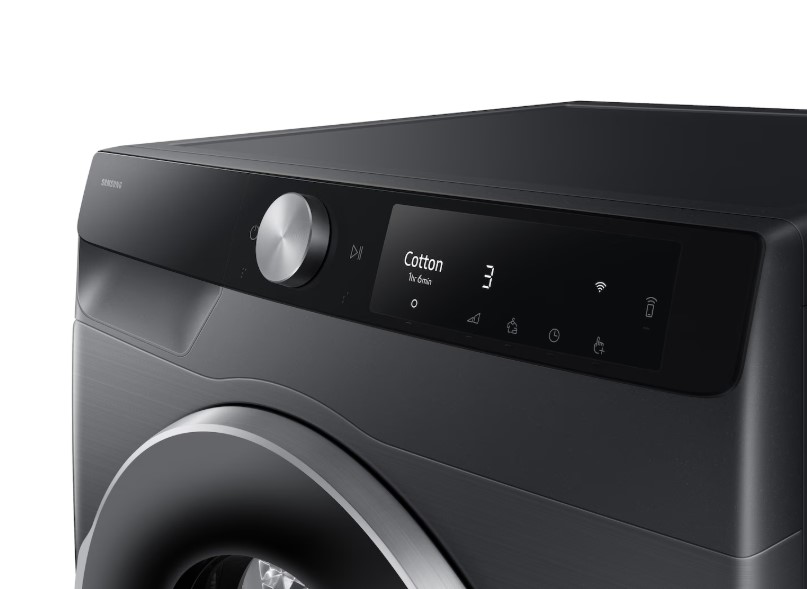 Сушильная машина также поддерживает AI Control, что делает управление более интуитивным. Система запоминает пользовательские привычки, предлагает соответствующие программы и отображает необходимую информацию на дисплее. С помощью SmartThings можно получать рекомендации по программам, планировать работу прибора и контролировать процесс сушки со смартфона. Для большего комфорта предусмотрена функция Одежда без складок, которая периодически прокручивает барабан после завершения программы, чтобы предотвратить образование складок на одежде. Дополнительным преимуществом является реверсивная дверца, которую можно переустановить в соответствии с планировкой помещения.