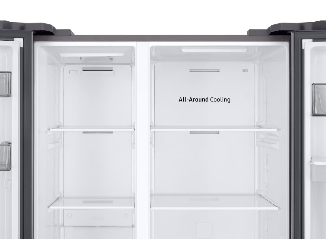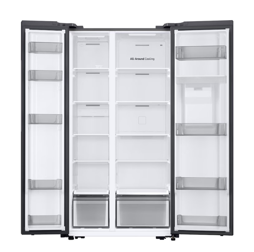 Samsung RS57DG410EM9UA – это просторный и современный side-by-side холодильник, который обеспечивает комфортное и эффективное хранение большого количества продуктов для активной семьи. Благодаря продуманному внутреннему пространству, интеллектуальным технологиям и бережному охлаждению он создает оптимальный микроклимат для ваших продуктов каждый день. Эта модель имеет общий полезный объем 578 литров, из которых 370 литров отведено под холодильное отделение для свежих продуктов и 208 литров под морозильную камеру для длительного хранения замороженных продуктов. Такое соотношение делает технику отличным выбором для семей, требующих много места и удобной организации продуктов.