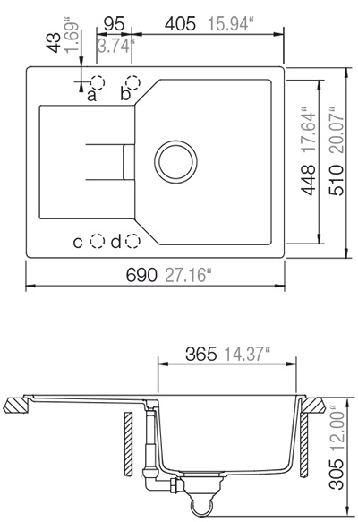 • Просторная чаша и крыло — практичная мойка для современной компактной кухни и не только
