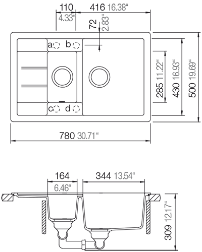 • Просторная чаша с дополнительной чашей и крыло — практичная мойка для современной компактной кухни и не только.
