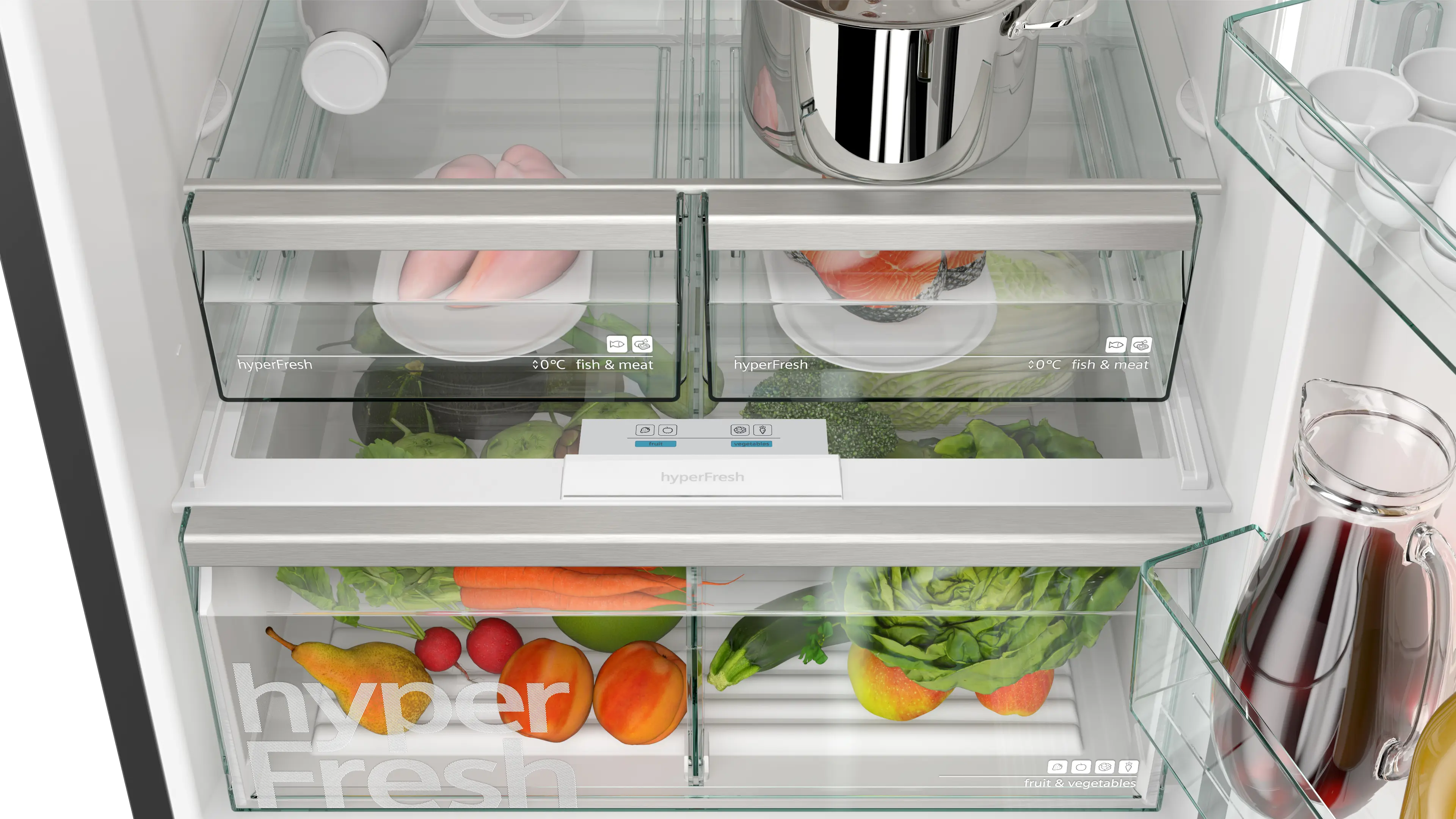 Холодильник NoFrost с системой свежести VitaFresh обеспечивает продолжительную свежесть для ваших продуктов.