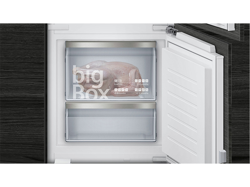 С равномерным LED-освещением вы легко рассмотрите содержимое холодильника. Лампы продуманно расположены спереди, чтобы продукты не заграждали свет. Не менее важна долговечность и энергосберегающие свойства светодиодных ламп. Чувствуете, что играете в тетрис, пытаясь поместить все в морозильник? Именно здесь вам пригодится bigBox. Это дополнительный высокий ящик для удобной сборки высоких контейнеров или крупных продуктов, таких как коробки с пиццей. Что бы вы ни планировали заморозить – bigBox предоставляет столько пространства, сколько нужно.