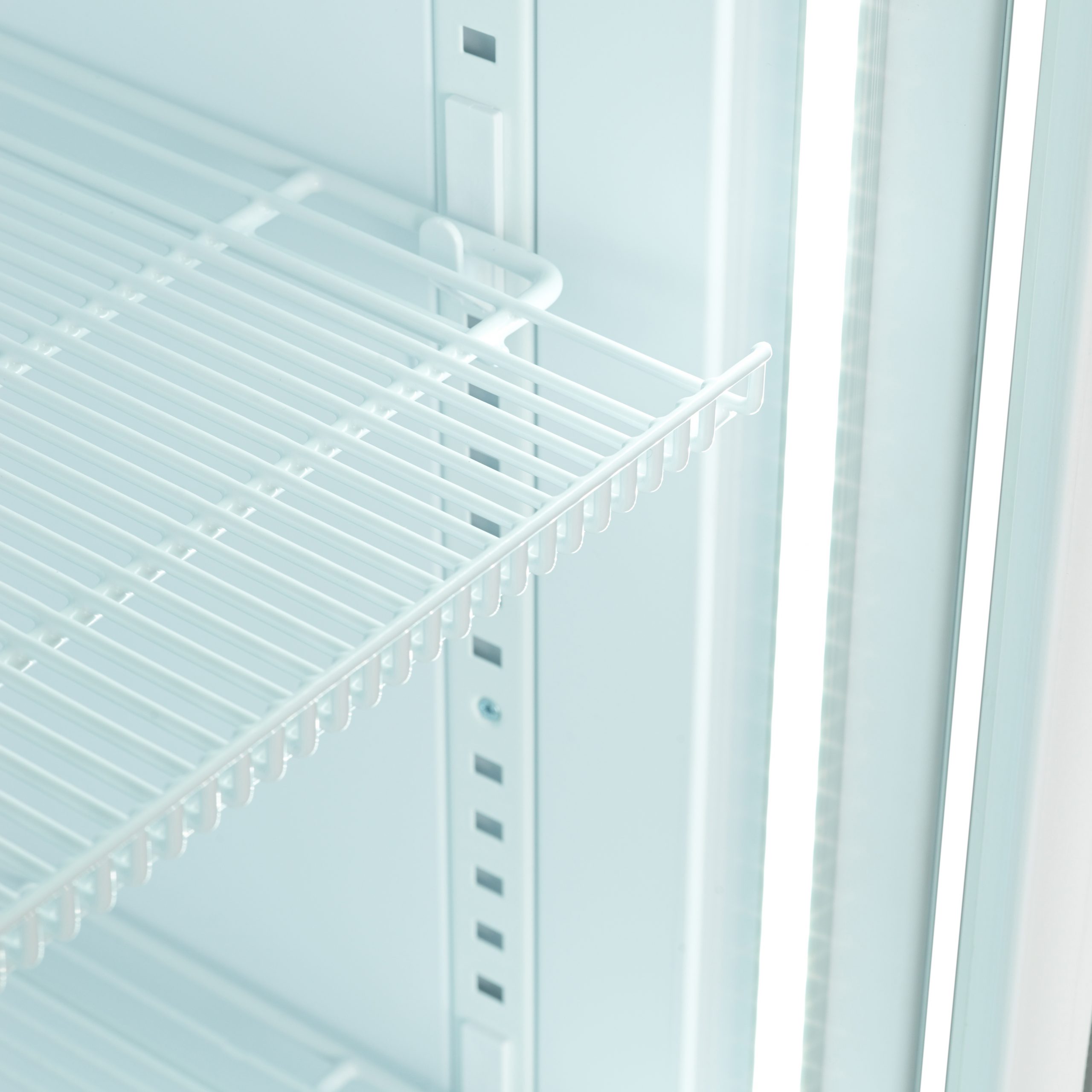 Этот холодильник со стеклянными дверями удобен в загрузке и эксплуатации, прост в обслуживании и чистке. Он готов обеспечивать вам ежедневную стабильную и надежную работу.