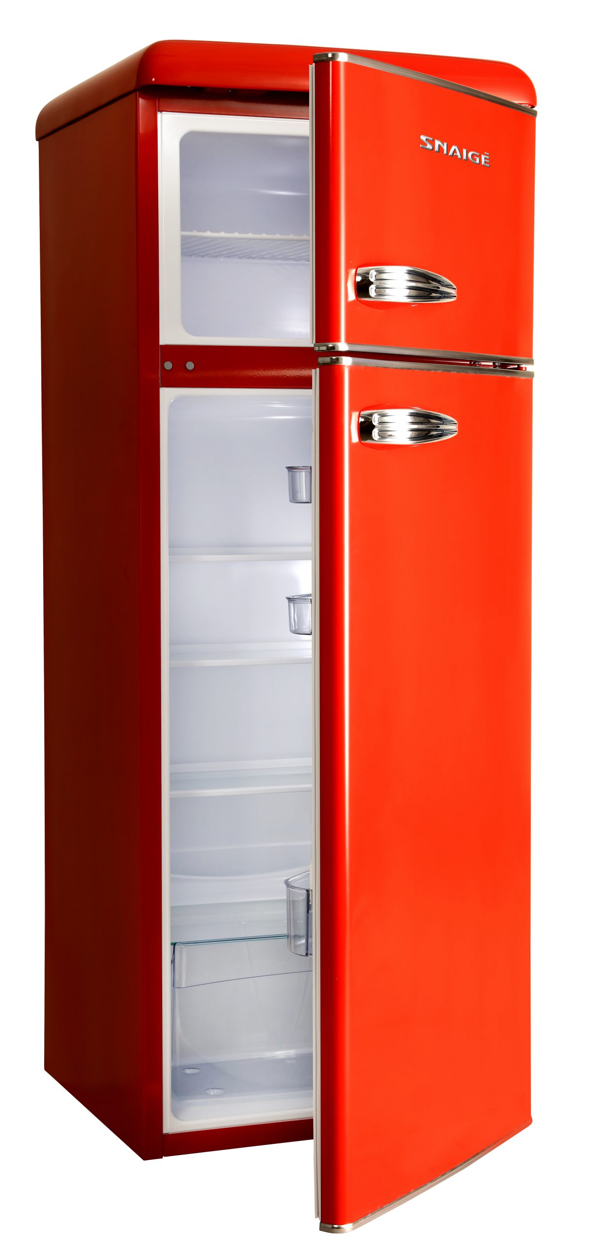 Коллекция ретро-холодильников SNAIGĖ — это ностальгический взгляд в далекое прошлое, в котором преобладали выразительные формы, доминирующие линии и яркие цвета. Ретро-стиль предназначен для таких же ярких, доминирующих личностей, ценящих стиль и индивидуальность. Ретро-холодильник SNAIGĖ не только вместительный и удобный, но, как и все ретро-произведения, становится акцентным и доминирующим в интерьере. Он — икона стиля, чье место в стильном доме, лофте, современном офисе. Использование специальной технологии охлаждения LOW FROST значительно замедляет образование инея и льда в морозильной камере, позволяя реже производить разморозку холодильника. А когда в этом возникнет необходимость, разморозка займет намного меньше времени. В надежном лотке для бутылок одновременно можно разместить бутылки разного объема. Лоток достаточно глубокий, поэтому при открывании двери бутылки не выпадают. Полки из закаленного стекла выдерживают вес до 25 кг, их тяжело разбить и поцарапать, но очень легко мыть. Профили, закрепленные в передней и задней частях полки, не позволят разлившейся жидкости капать на нижние полки. Положение полок легко можно отрегулировать — поменять их высоту или полностью вынуть.