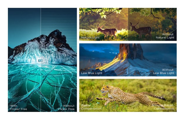 TCL 98C7K – это невероятно большой 98-дюймовый QD-MiniLED Smart TV с панелью CrystGlow HVA, которая сочетает ультра-высокую яркость, более 2000 зон локального затемнения и поддержку HDR10+, Dolby Vision IQ и HLG. Благодаря частоте обновления 144 Гц и мощному процессору, телевизор обеспечивает плавный просмотр динамических сцен – спорт, фильмы, игры – с минимальным размытием и высокой детализацией.