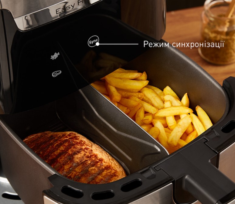 | Особенности | Extra Crisp – циркуляция потоков горячего воздуха, SYNC – синхронизация приготовления 2 различных блюд, возможность сушки (дегидратации), звуковой сигнал |