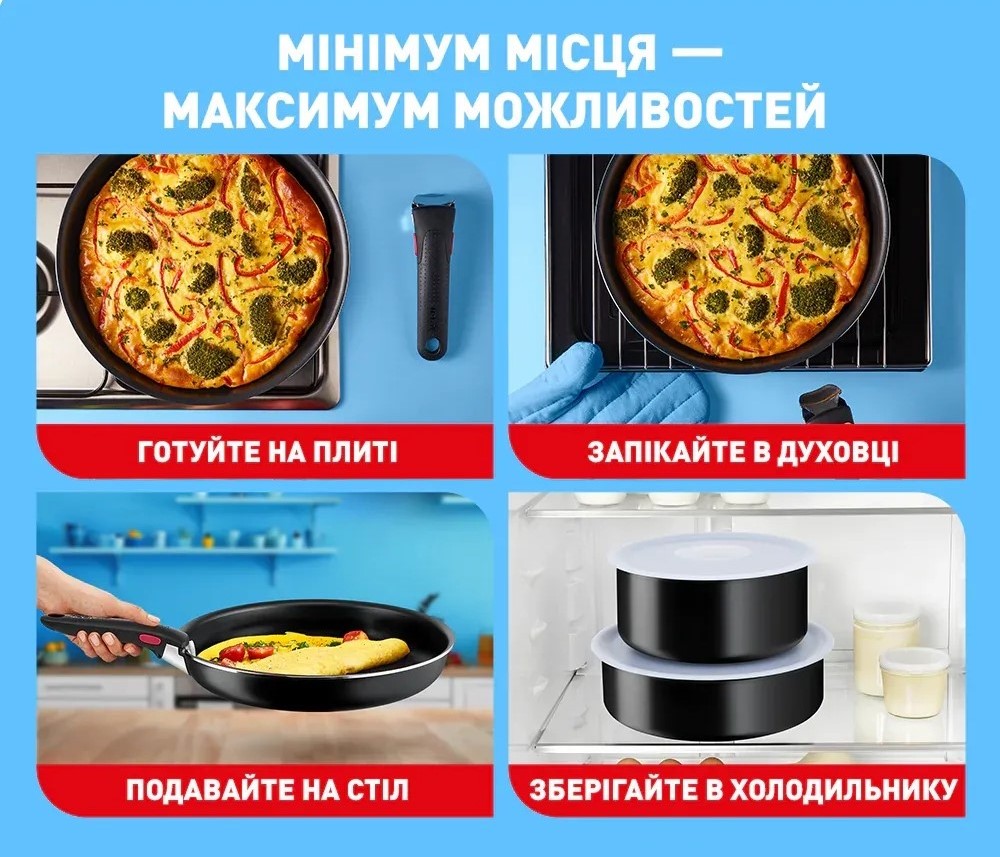 Tefal Ingenio Easy Cook Clean L1539543 – это универсальный набор посуды, созданный для максимального удобства в ежедневном приготовлении. Благодаря системе со съемной ручкой посуда легко трансформируется под разные задачи: ее можно использовать на плите, ставить в духовку или хранить блюда в холодильнике. Такой формат позволяет экономить место и делает кухню организованнее.