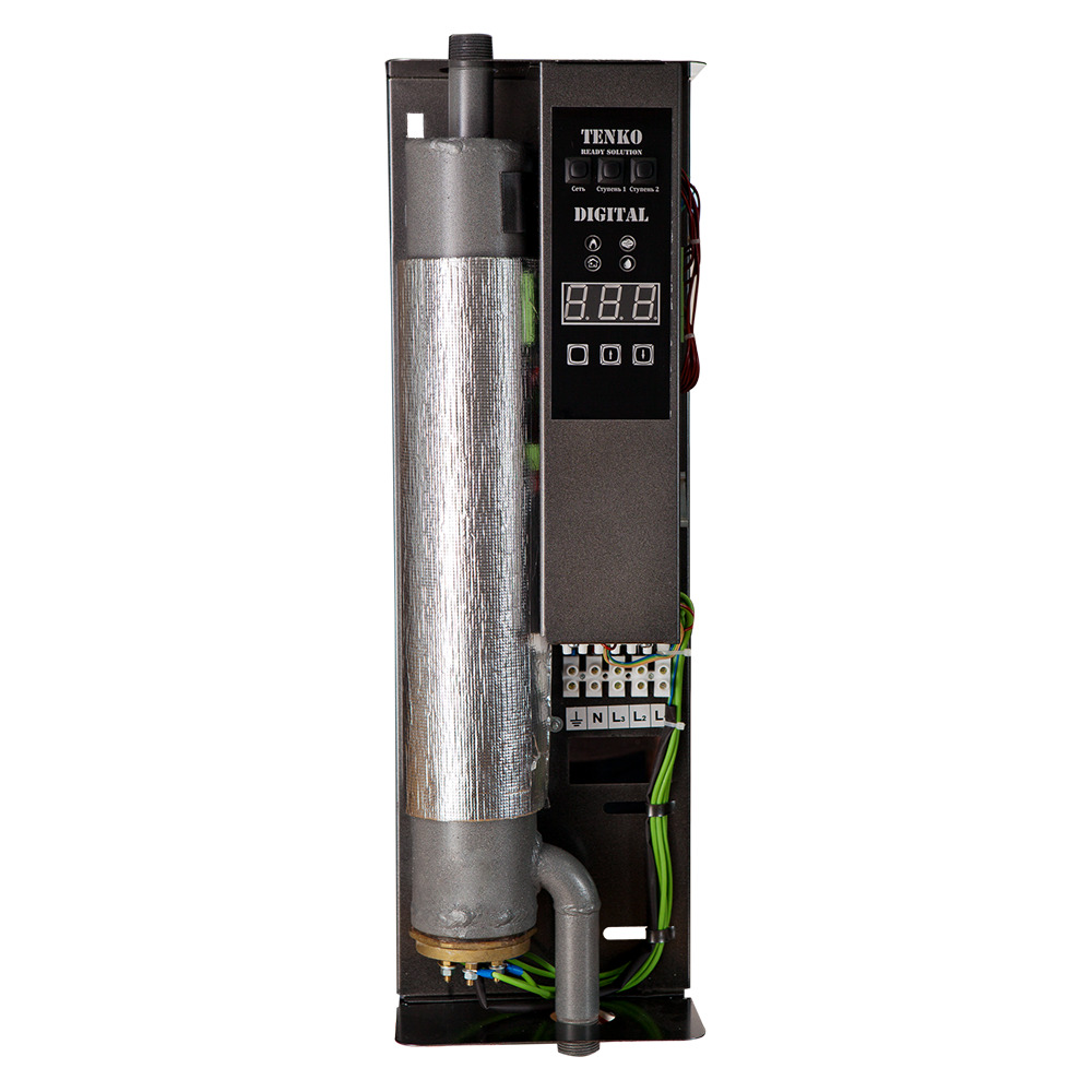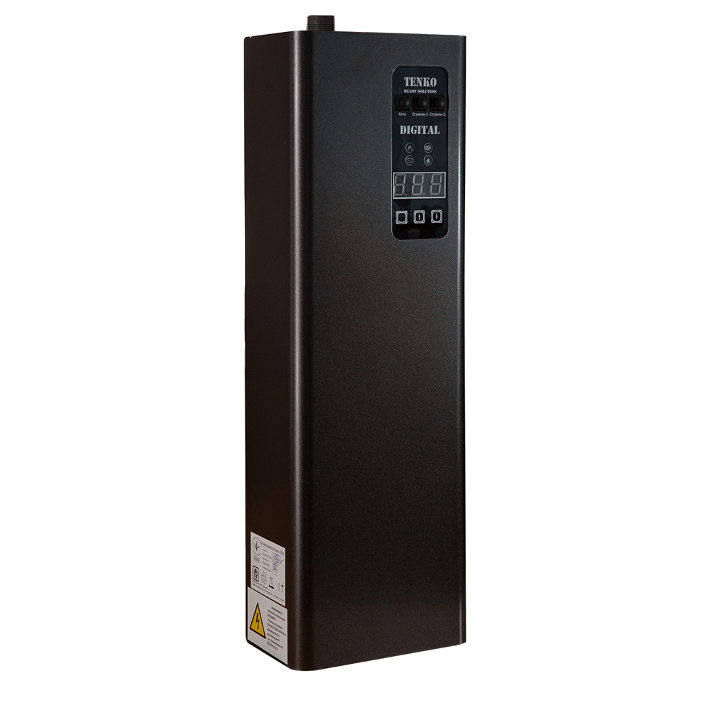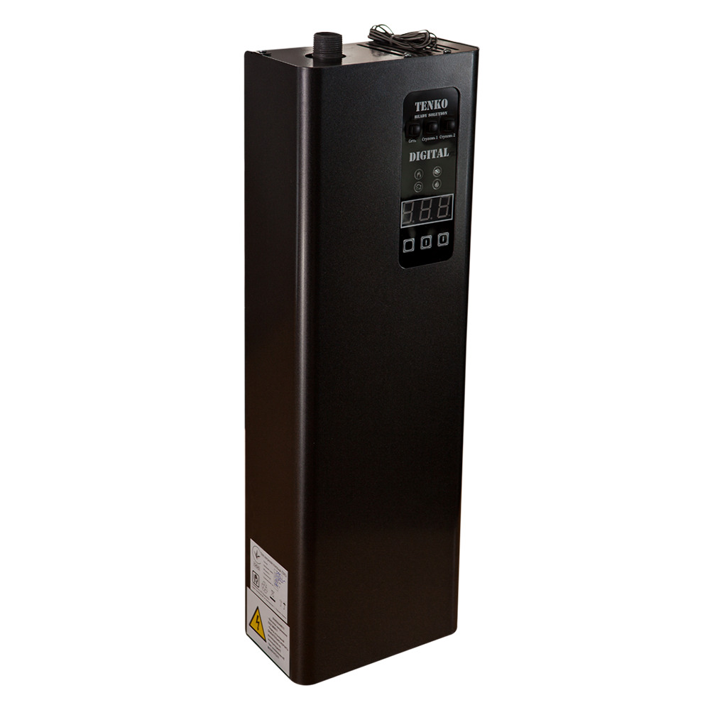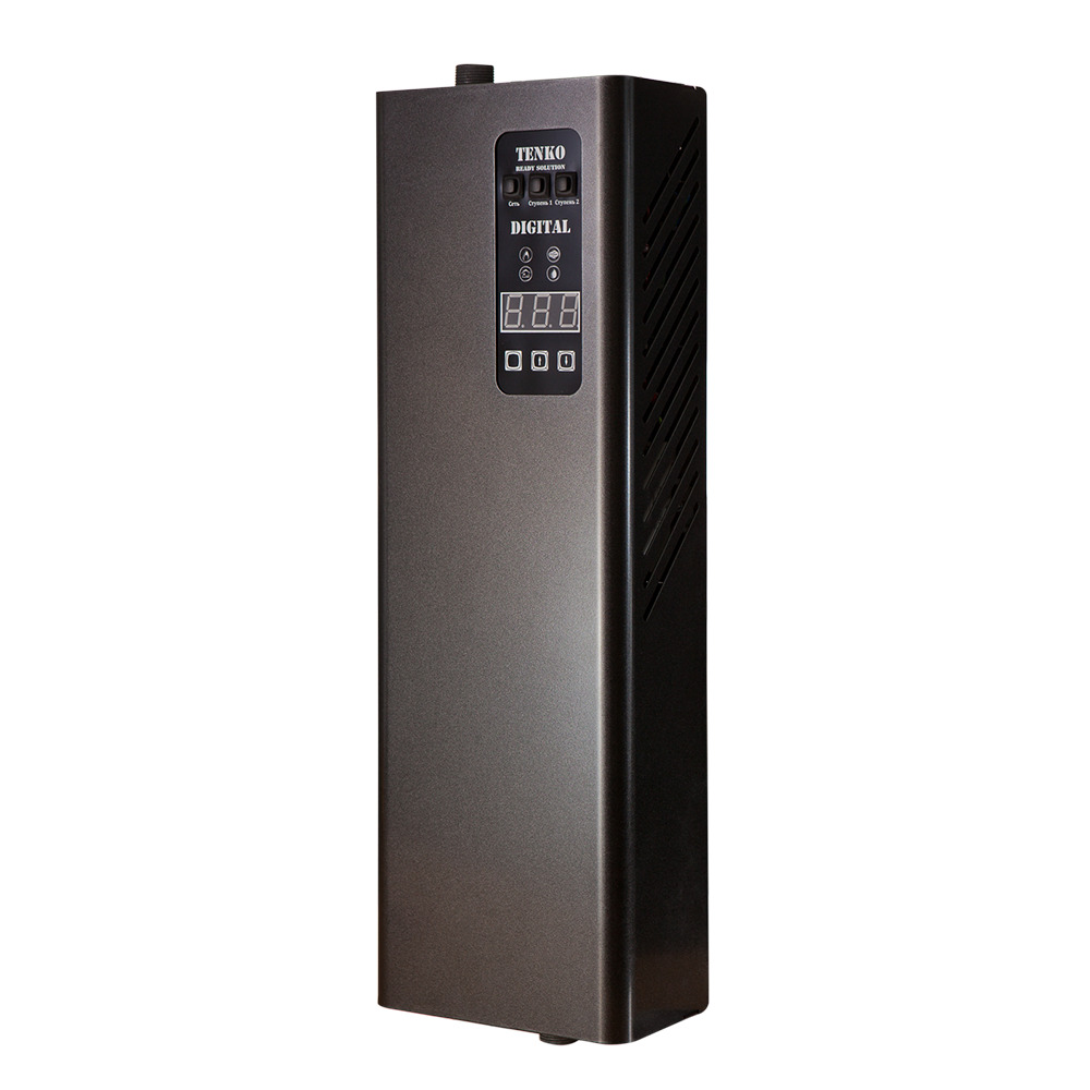 Серия электрических котлов Digital производства компании Tenko предназначена для отопления помещений или дополнительного устройства в действующей системе отопления. Cерия котлов Digital создана как альтернатива серии котлов КЭ, оснащенная возможностью управления включения/выключения насоса до или после включения тенов, двухступенчатой системой защиты, предотвращающей разрушение устройства от перегрева, двумя датчиками температуры, защитным модульным контактором. Теплоноситель в системе регулируется плавно в диапазоне 20-75С.