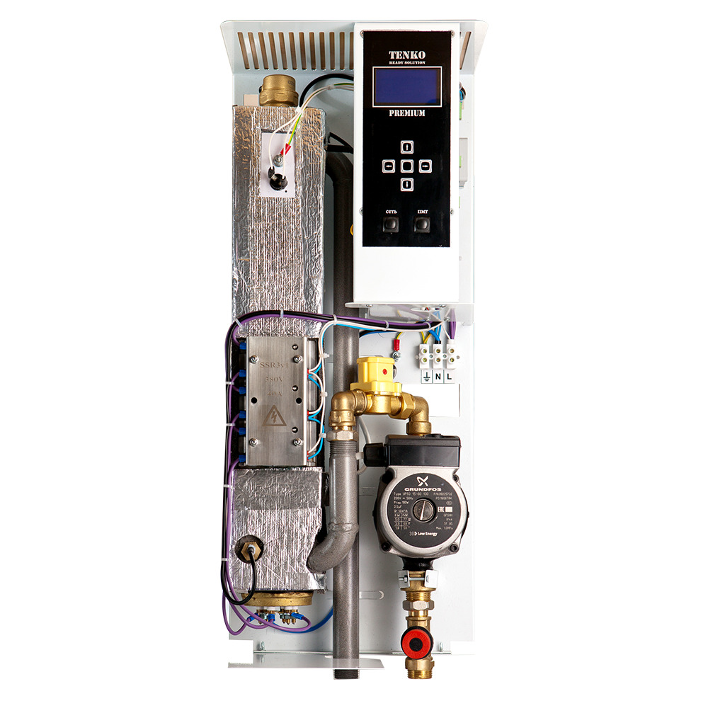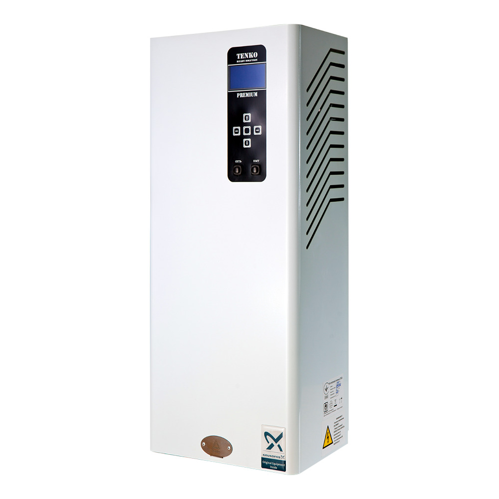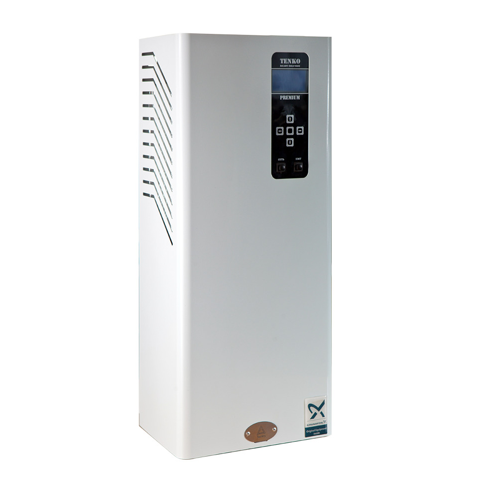Электрические котлы серии Премиум ТМ Tenko предоставляют широкие возможности управления работой устройства и обеспечивают максимальный комфорт и автономность эксплуатации при отоплении различных помещений с максимальной площадью 150 кв.м. Представленная линейка оборудования отличается наличием встроенного микроконтроллера и программной системы управления для полного контроля работоспособности котла. Микроконтроллер осуществляет управление блоками ТЭНов и реле, а встроенный программный счетчик электроэнергии ведет статистику и позволяет оптимизировать работу. Бесшумная работа при коммутации обеспечивается твердотельным реле с водяным охлаждением. Удаленное управление котлом осуществляется через любой браузер или приложение на Android.